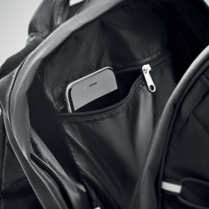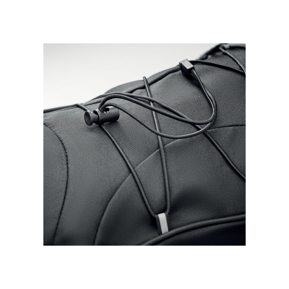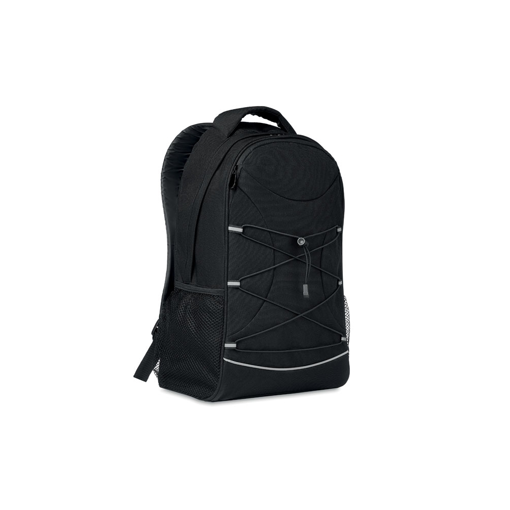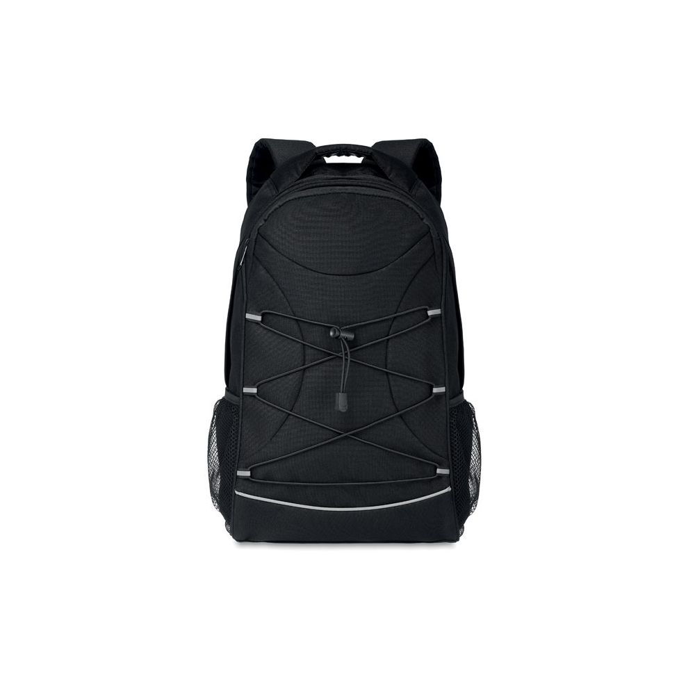 Artikel-Nr: OCBMO6156-03Rucksack aus 600D RPET mit Schnürung auf der Vorderseite und reflektierenden Details. Netztaschen auf beiden Seiten.
