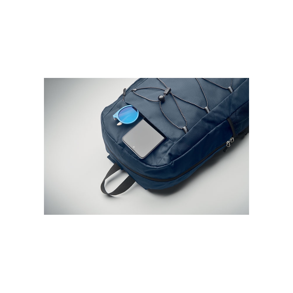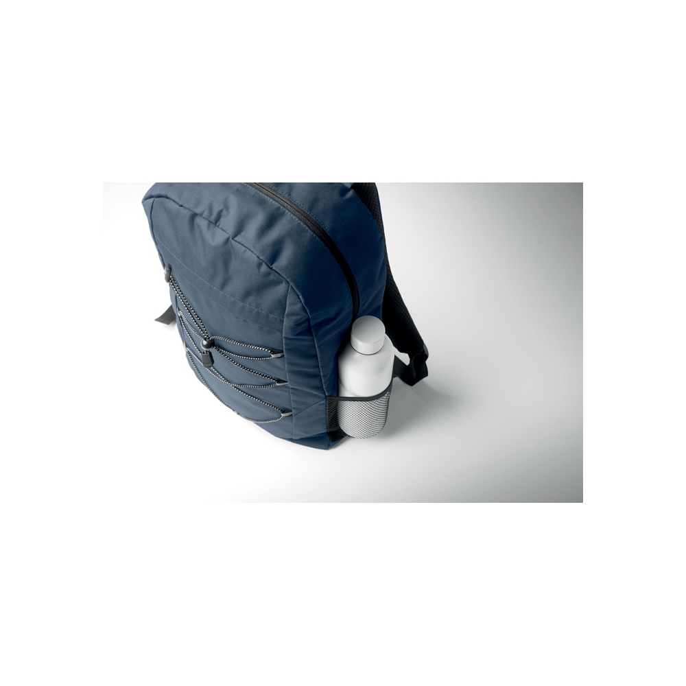 Artikel-Nr: OCBMO2491-85Rucksack mit Schnürung. Fronttasche mit Reißverschluss. Netztaschen auf beiden Seiten. 600D RPET-Polyester.