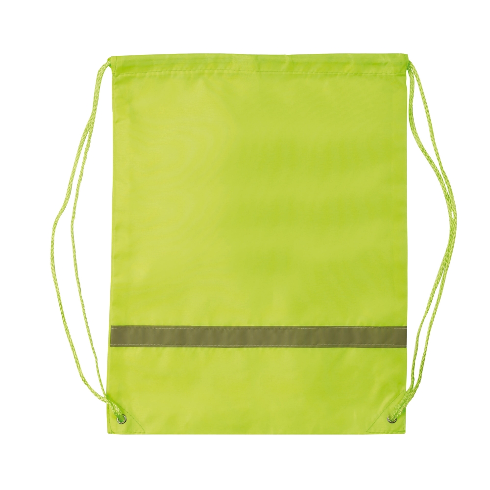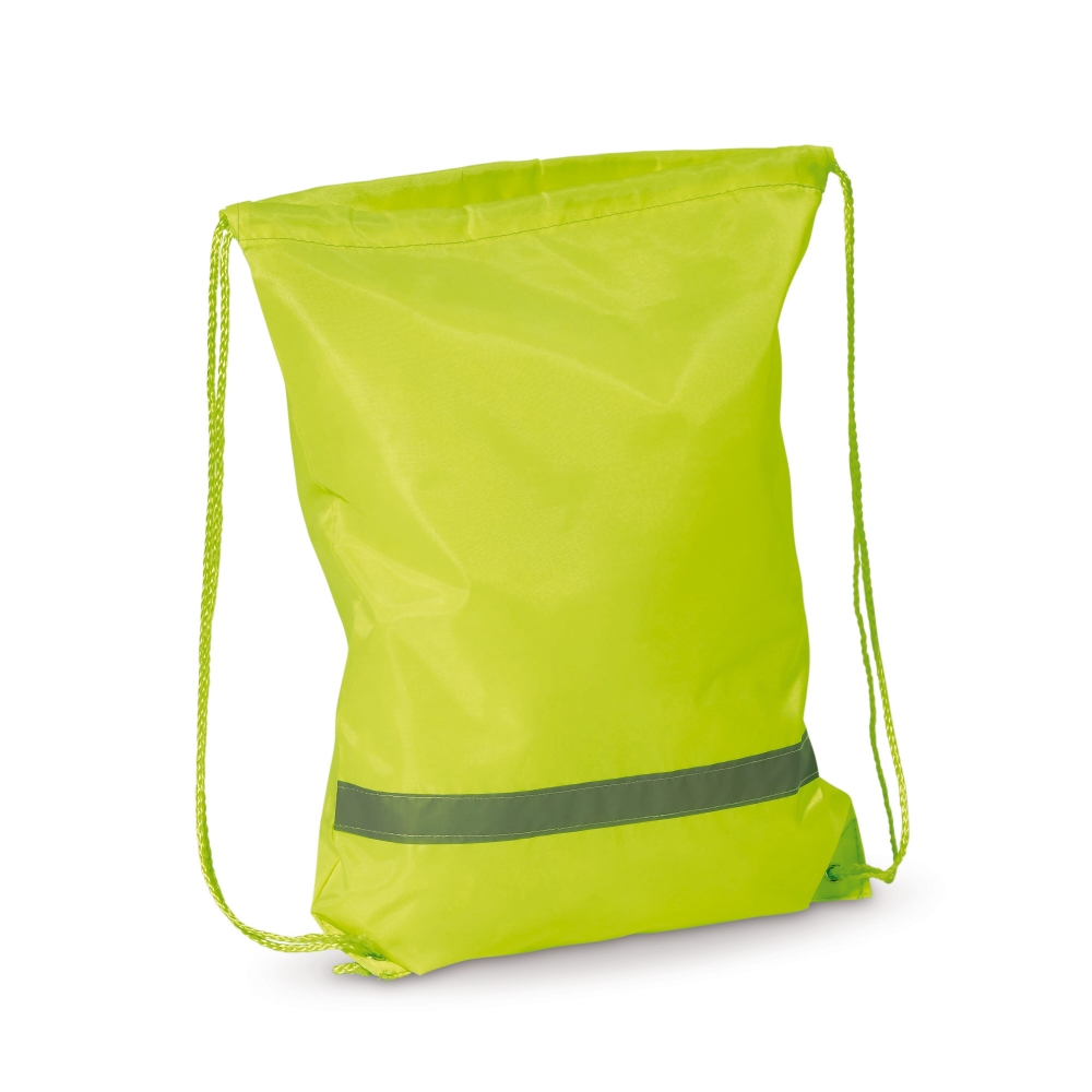 Artikel-Nr: ART91398N0032Polyester-Rucksack mit Reflektorstreifen und Kordelverschluss. Einfarbig bedruckt im Siebdruck oder mehrfarbig bedruckt mit Transferdruck.