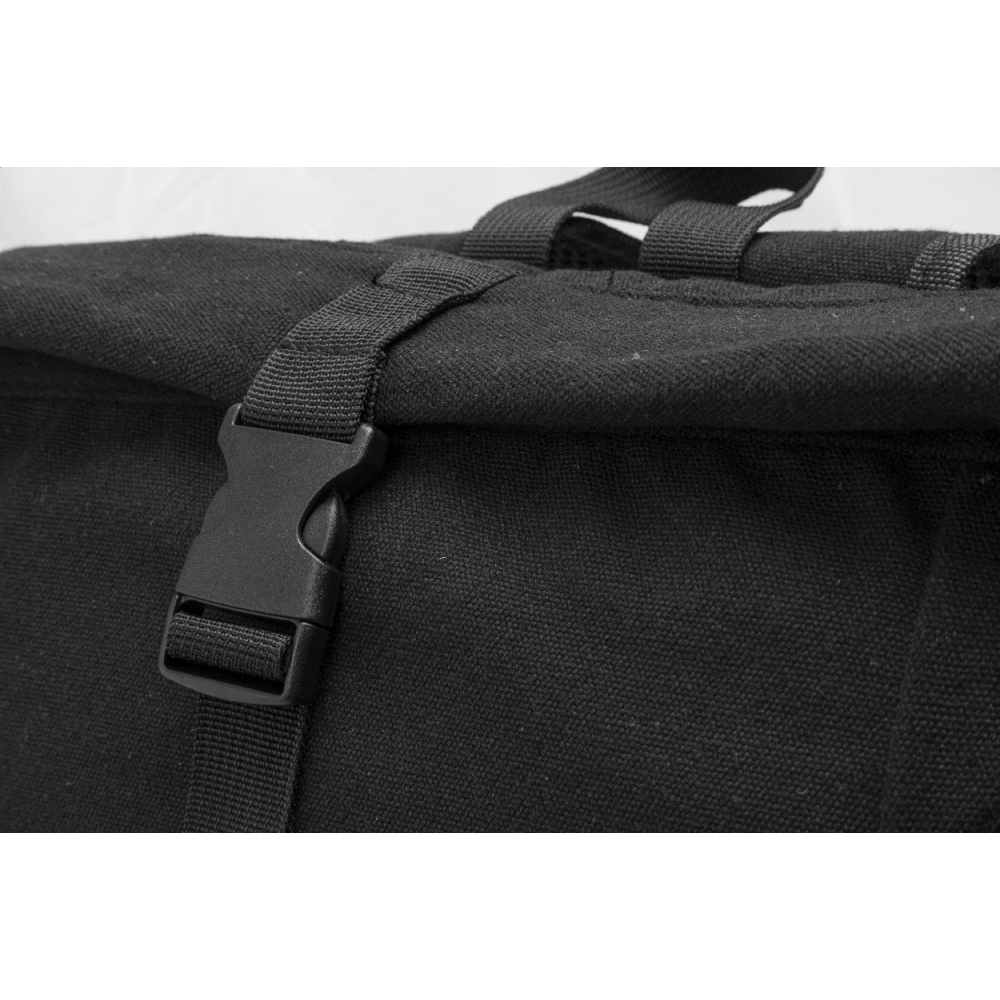 Artikel-Nr: AND800132-77Rolltop-Rucksack aus recyceltem Canvas mit Schnallenverschluss und Reißverschluss-Fronttasche aus weichem recyceltem PU-Leder. Mit gepolstertem Laptopfach (15 Zoll), Seitentaschen, gepolstertem Rücken und Schultergurten. Material: 70 % recycelte Baumwolle und 30 % RPET-Polyester. Mit Labele recycelte Baumwolle.