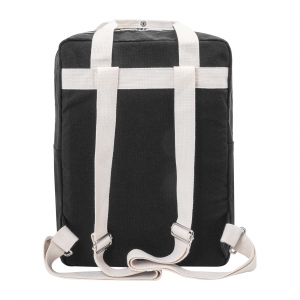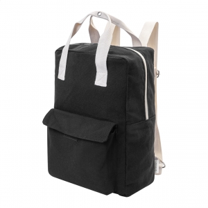 Artikel-Nr: AND800613-10Rucksack aus recyceltem Canvas mit Reißverschluss-Haptfach, gepolstertem Laptopfach (13") und Fronttasche mit Klettverschluss. Material: 70% recycelte Baumwolle und 30% RPET Polyester. Mit Label RPET.