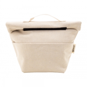 Artikel-Nr: AND800122-00Rolltop-Kühltasche aus recyceltem Canvas mit Fronttasche, Aluminiumpolsterung und Klettverschluss. Material: 70 % recycelte Baumwolle und 30 % RPET-Polyester. Mit Label recycelte Baumwolle.