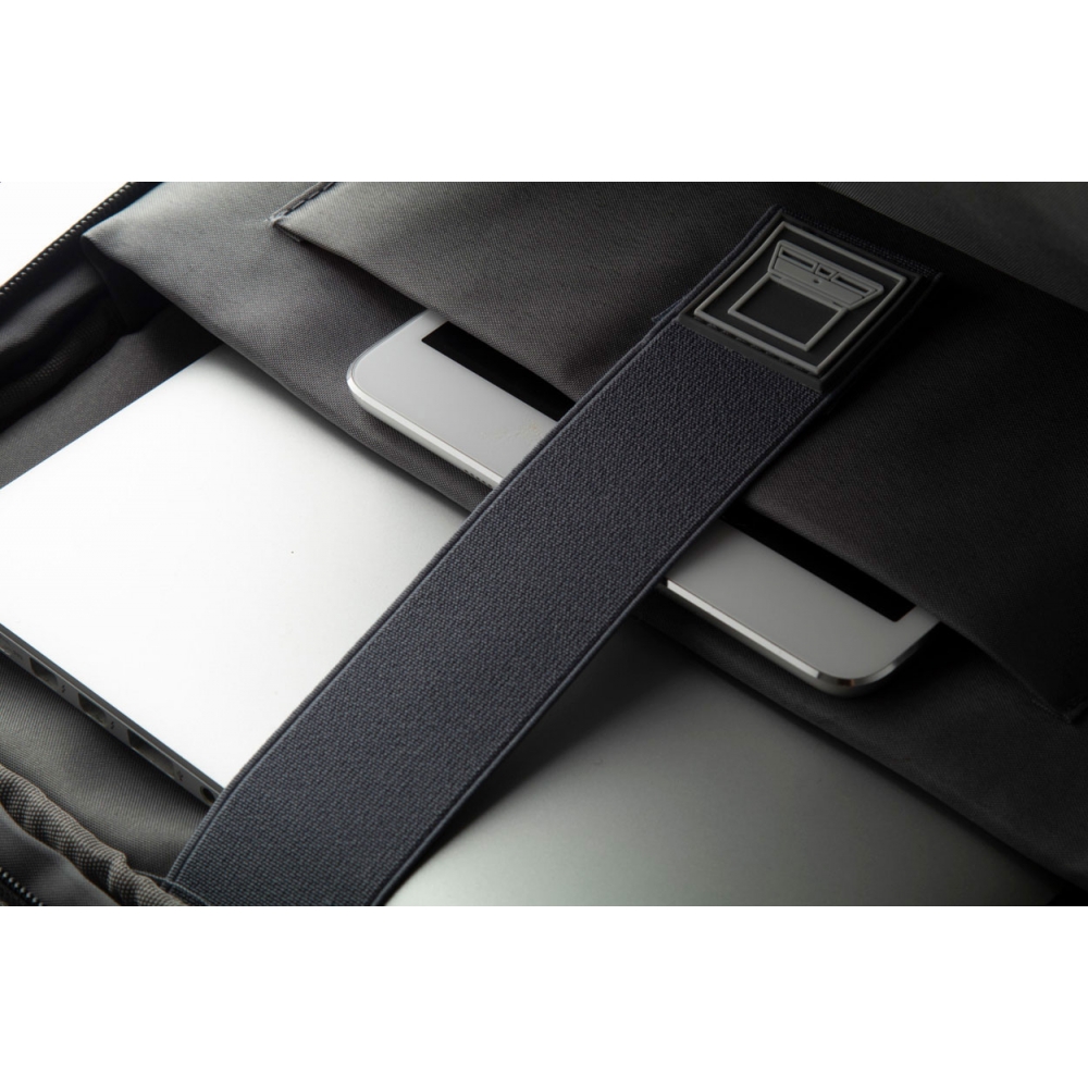 Artikel-Nr: AND810432-80Wasserdichter Rucksack mit mehreren Reißverschlussfächern, gepolstertem Laptop- (15") und Tabletfach, ergonomischen Rücken und Schultergurten, Anti-Diebstahl-Tasche, Trolleygurt und eingearbeiteter USB-Verbindung für Powerbanks. Matieal: 300D Oxford-Polyester.
