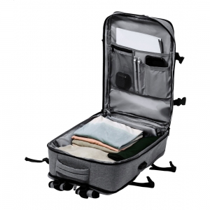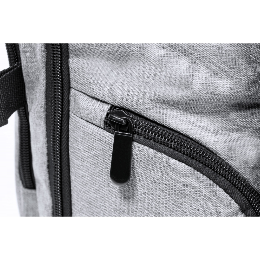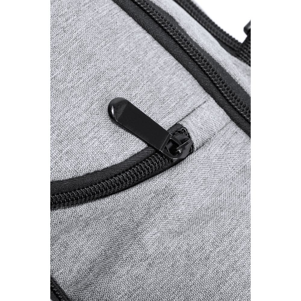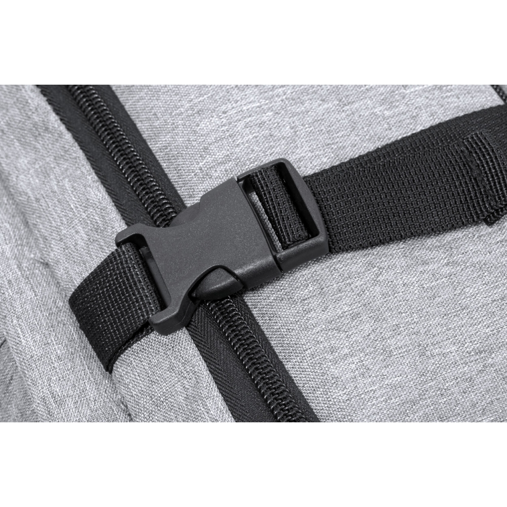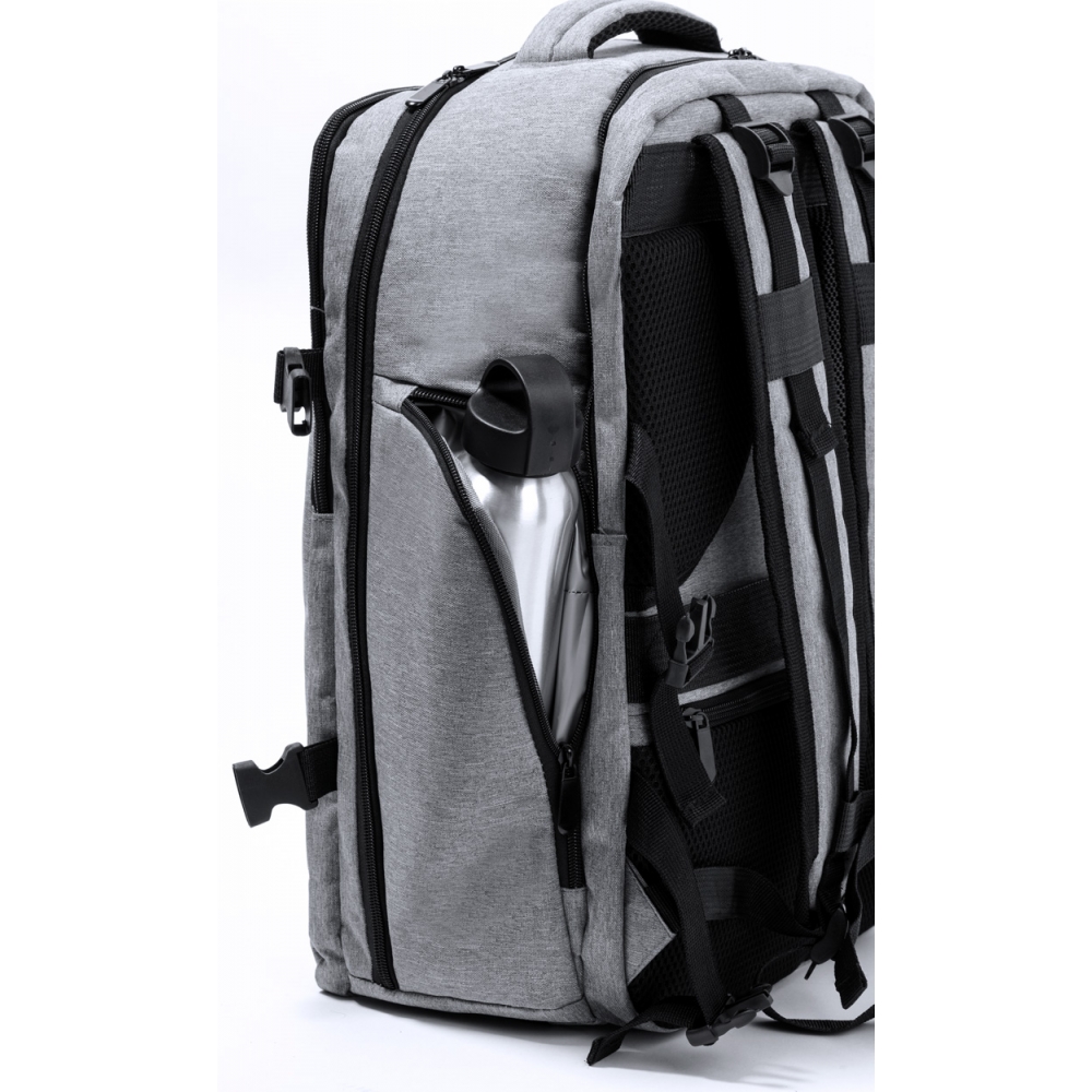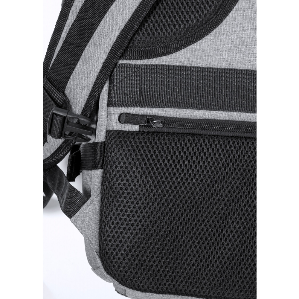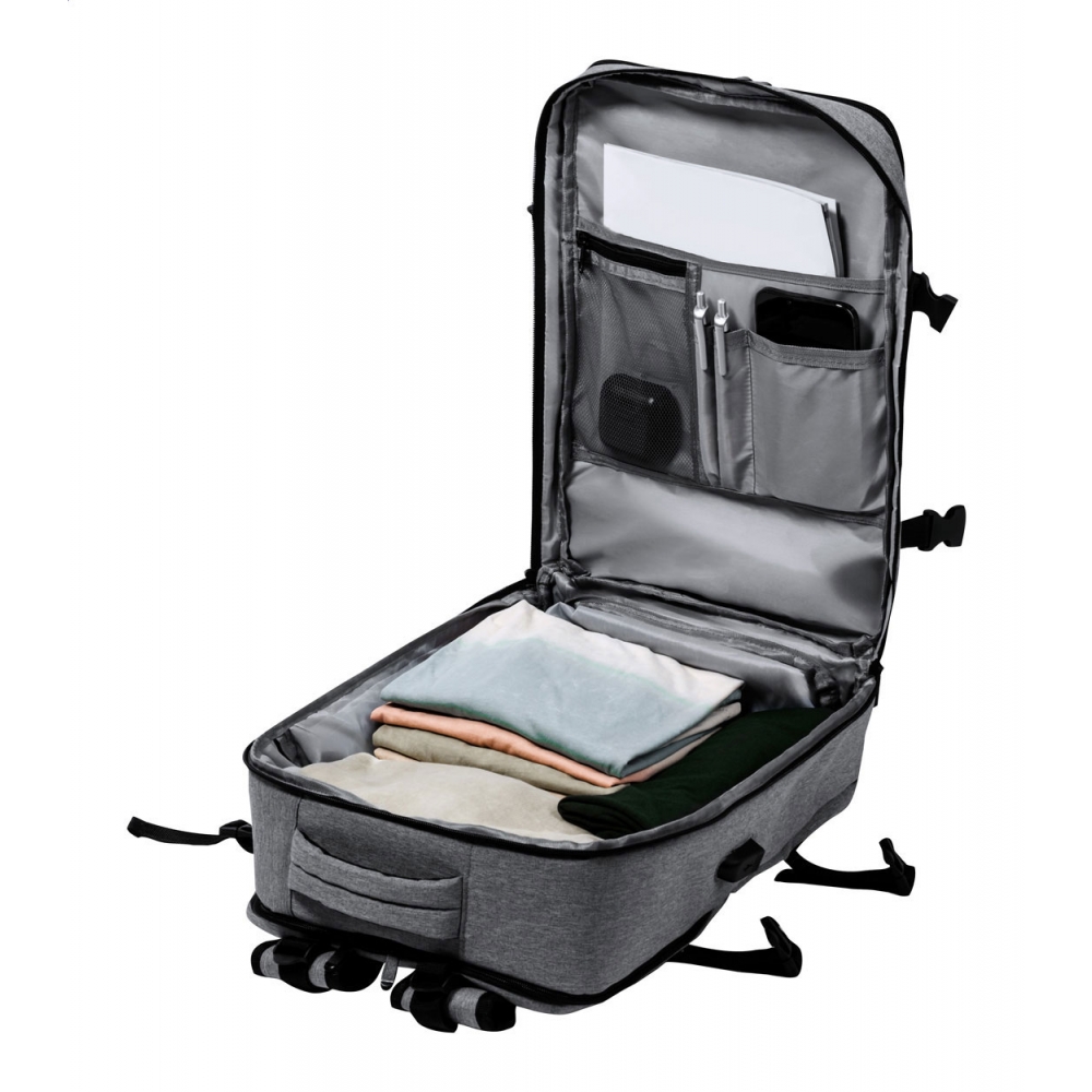 Artikel-Nr: AND733472-77Wasserabweisender RPET-Rucksack mit 3 Hauptfächern mit Reißverschluss, 2 Fronttaschen mit Reißverschluss, Seitentasche mit Reißverschluss und versteckter Diebstahlschutztasche. Mit gepolstertem Laptop- (17") und Schuhfach, gepolstertem Rücken und Schultergurten. Mit Trolley-Gurt und integriertem USB-Anschluss für Powerbanks. 300D RPET-Polyester mit markantem RPET-Label.