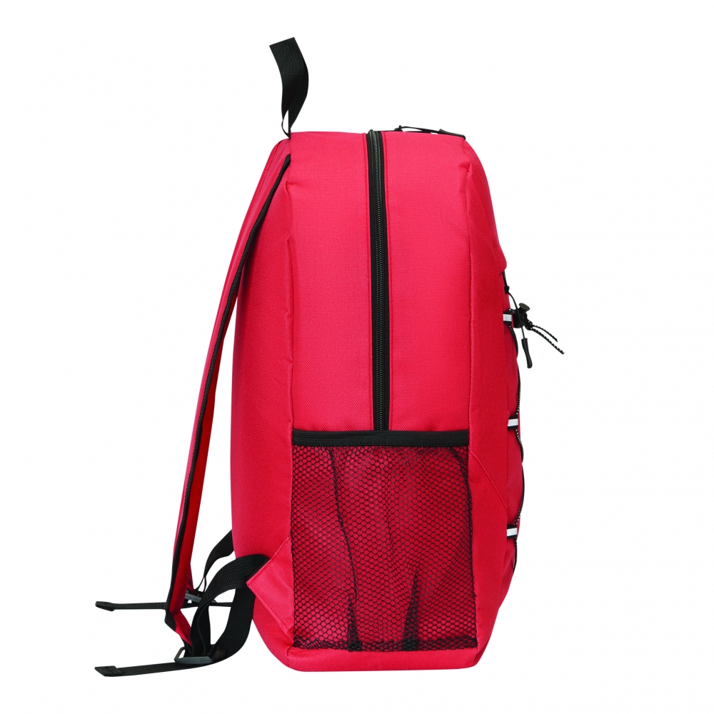 Artikel-Nr: INP56-0819708Rucksack FARO: aus recyceltem Polyester (RPET), Reißverschluss-Hauptfach, Reißverschluss-Vorfach mit verstellbarem, elastischem Kordelzug, Trageschlaufe, 1 seitliches Netzfach, gepolsterter Boden, verstellbare gepolsterte Schultergurte