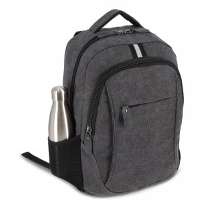 Artikel-Nr: ART95297N0060Stilvoller Rucksack aus recyceltem Baumwoll-Canvas. Mit 100 % recyceltem, reflektierendem Gurtband, luxuriösen Reißverschlüssen und Griffen sowie einem Futter aus 100 % recyceltem Polyester. Mit gepolstertem Rücken, Haltegriff, verstellbaren Schultergurten, 2 Seitentaschen für Flaschen oder einen Regenschirm, Fronttasche und Laptop-Innenfach.