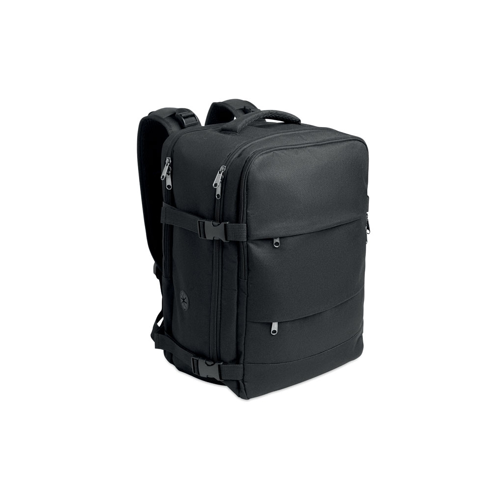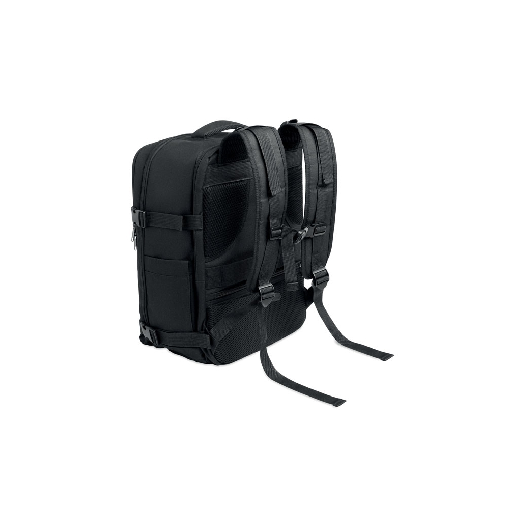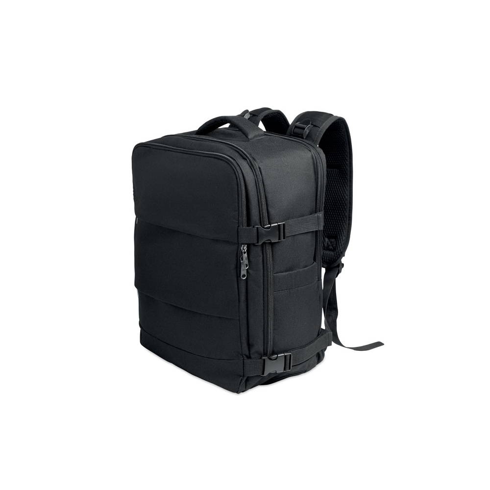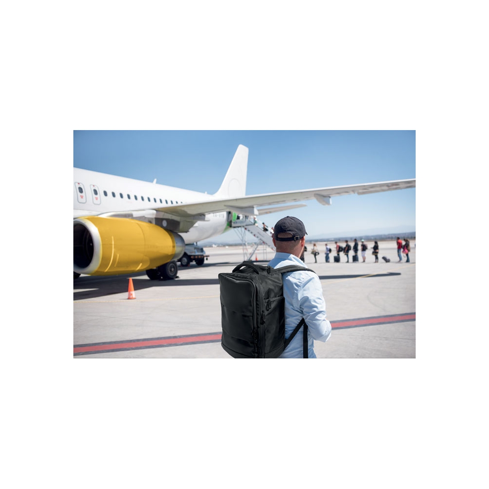 Artikel-Nr: OCBMO2784-03Erweiterbarer Rucksack in Kabinengröße aus 600D RPET-Polyester mit PU-Beschichtung. 180°-Öffnung. Gepolstertes 15''-Laptopfach, Schuhfach, Netzgurte, Trolley-Halterung und seitliche Steckverschlüsse.