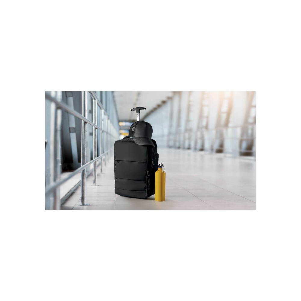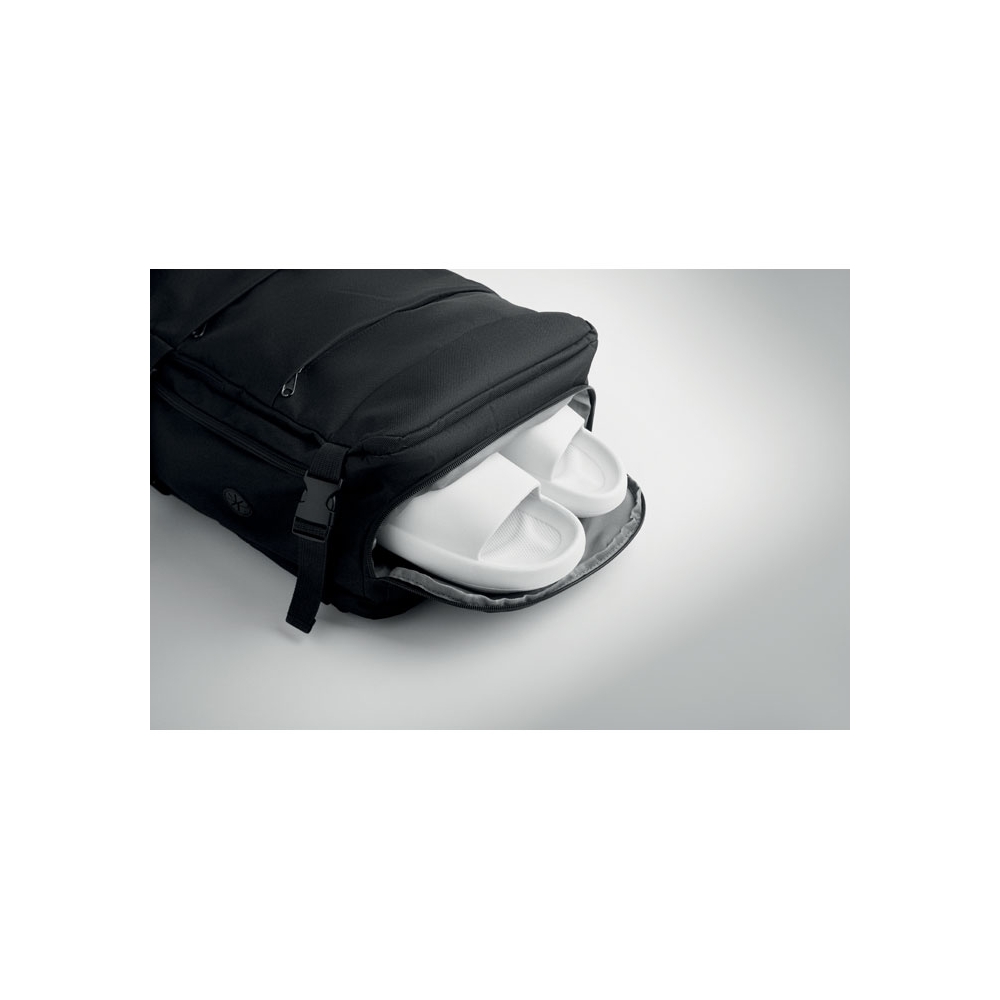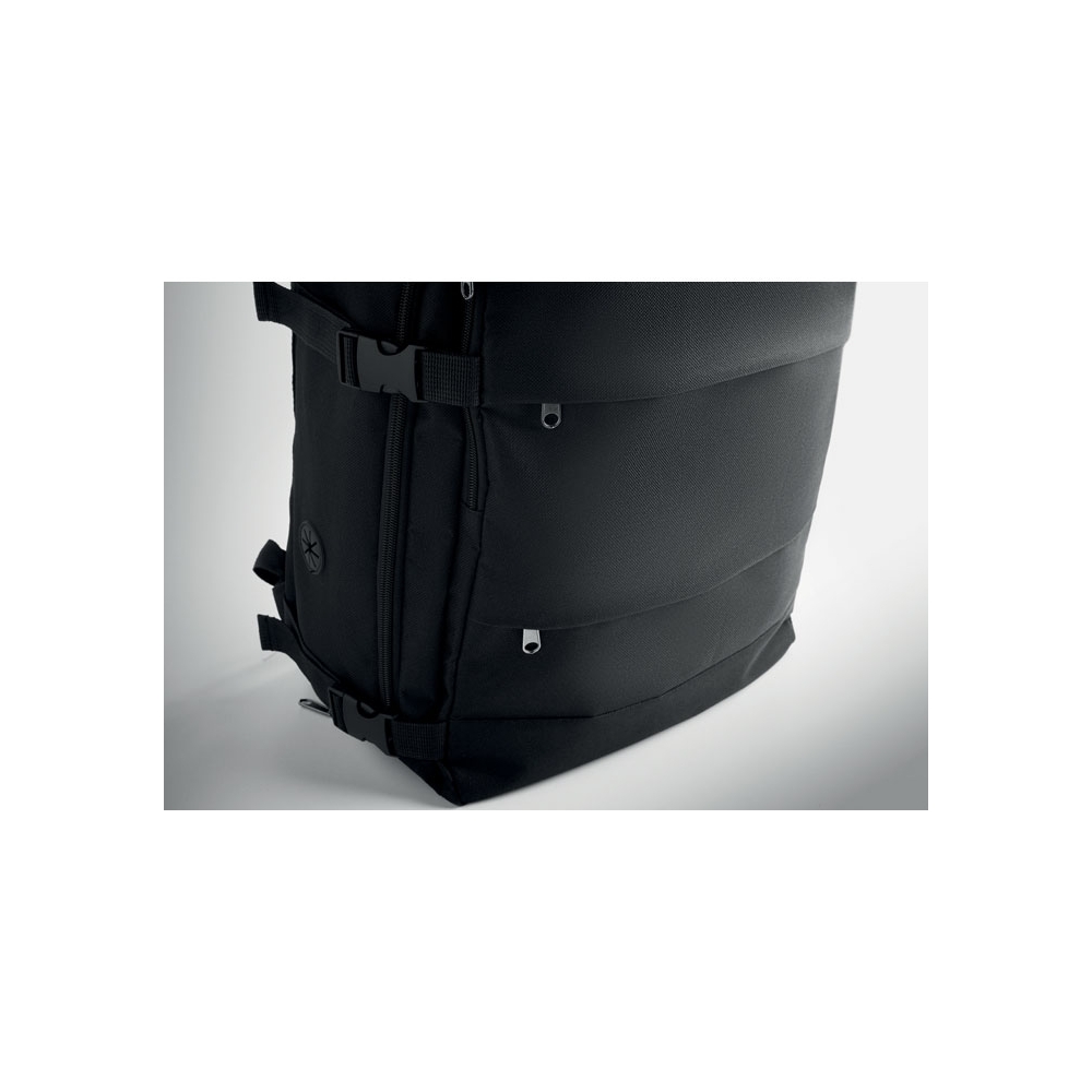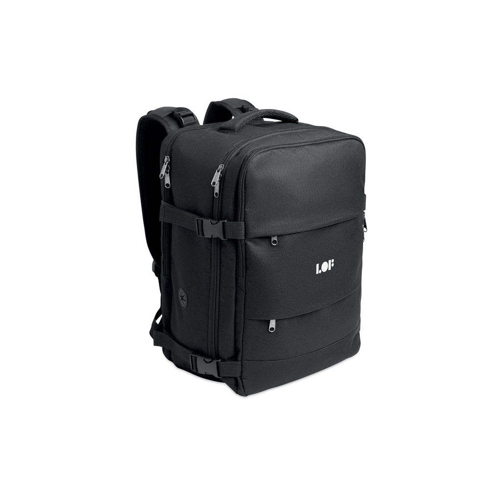 Artikel-Nr: OCBMO2784-03Erweiterbarer Rucksack in Kabinengröße aus 600D RPET-Polyester mit PU-Beschichtung. 180°-Öffnung. Gepolstertes 15''-Laptopfach, Schuhfach, Netzgurte, Trolley-Halterung und seitliche Steckverschlüsse.
