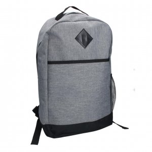 Artikel-Nr: ELT09112012-00001Moderner Rucksack im schicken grau-melierten Farbton. Der Rucksack mit gepolstertem Rückenteil verfügt über ein offenes Frontfach sowie ein seitlich angebrachtes Netzfach zum Verstauen einer Trinkflasche. Das vorne aufgenähte PU Badge ermöglicht das Befestigen von Schuhen, indem die Schnürsenkel durchgefädelt und verknotet werden. Das großzügige Innenfach wird durch einen schwarzen 2-Wege-Reißverschluss verschlossen. Füllvolumen: ca. 15,0 Liter.