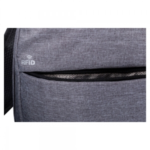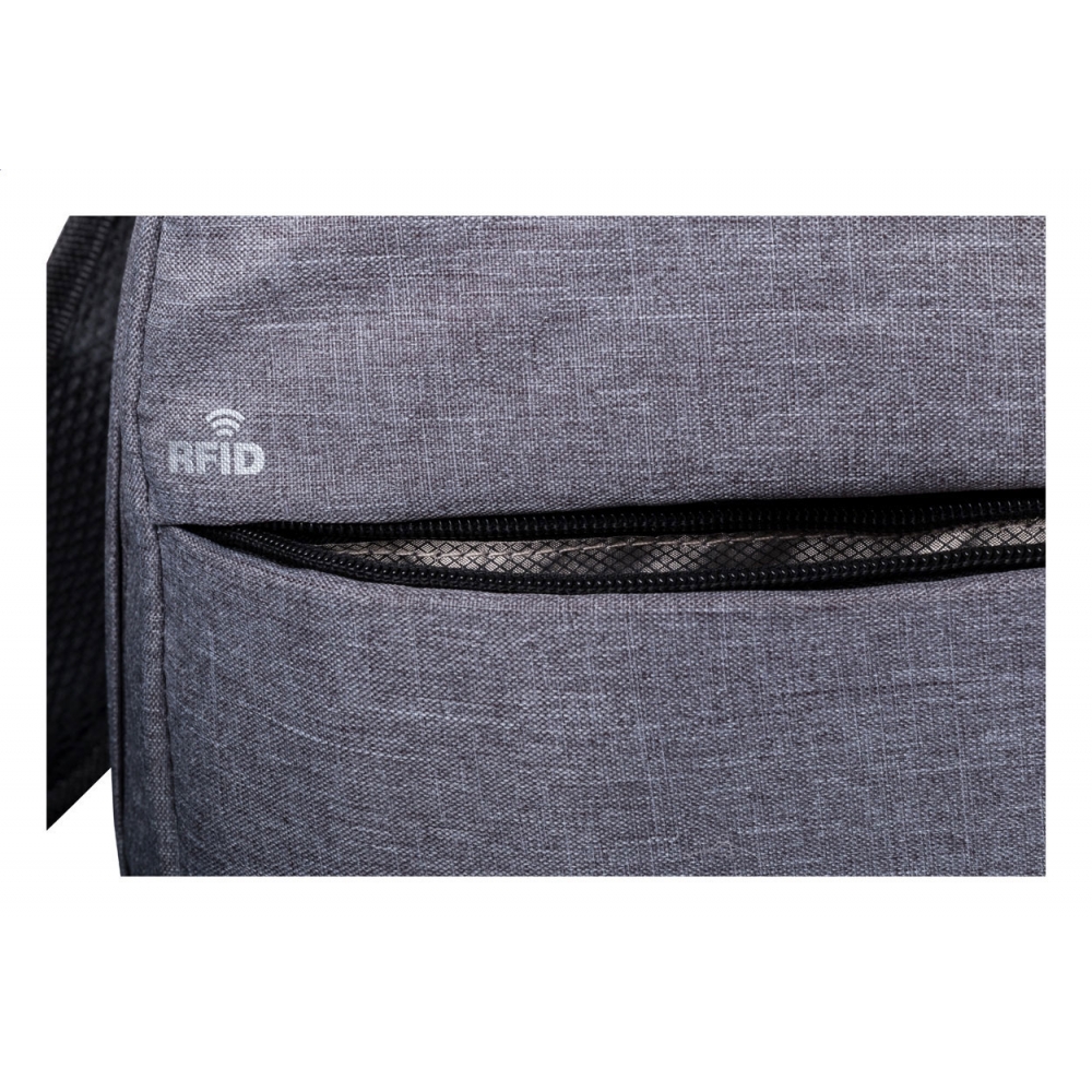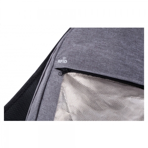 Artikel-Nr: AND721153-77Rucksack mit RFID-Ausleseschutz, mehreren Reißverschlussfächern, gepolstertem Laptopfach (15"), gepolstertem Rücken und Schultergurten sowie eingebautem USB-Anschluss für Powerbanks. Material: 300D Polyester.