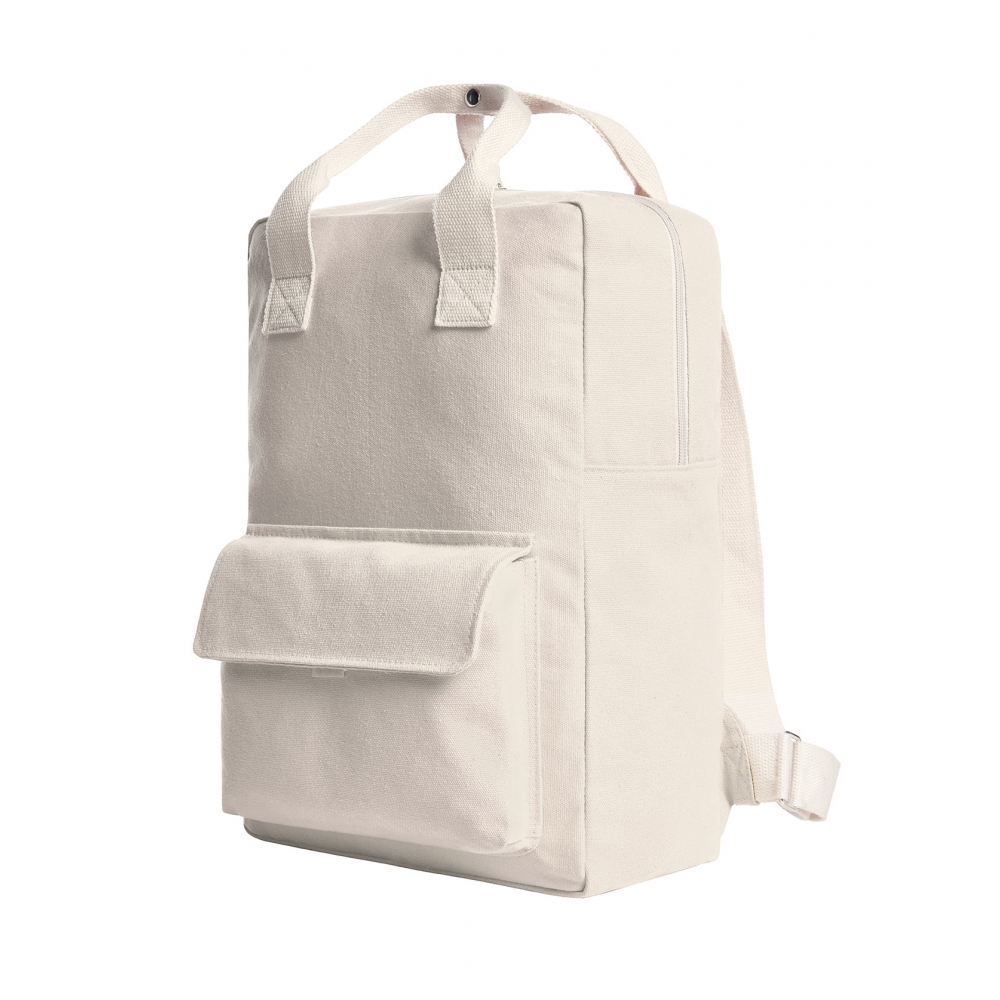 Artikel-Nr: HLF1816505-704Urbaner Rucksack mit wertigen Metall-Accessoires; Hauptfach mit 2-Wege-Reißverschluss; flaches Einsteckfach innen; Vortasche mit Klettverschluss; Handgriffe mit Druckknopf; längenverstellbarer Baumwoll-Träger