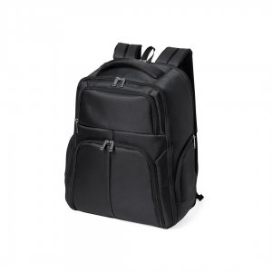 Artikel-Nr: KTO11847002000Hochwertiger Rucksack aus strapazierfähigem 600D Nyon mit schwarzem Finish. Hauptfach mit passendem Reißverschluss und doppeltem Zugband. Enthält 3 Außentaschen und 2 Seitentaschen, alle mit Reißverschluss. Polsterung an Griff, Rücken und Schultergurten, die verstellbar sind. Innen mit gepolsterten Fächern für Laptops bis zu 17" und Tablets bis zu 12". Befestigung auf der Rückseite für die Montage eines Trolleys.