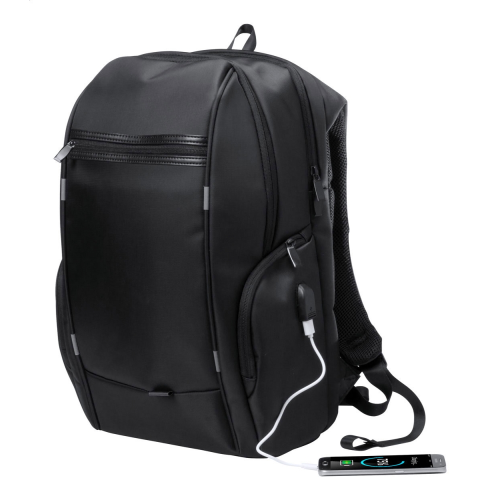 Artikel-Nr: AND781385-10Rucksack aus Nylon, spritzwasserfest, mit mehreren Reißverschlusstaschen. Mit gepolstertem Laptopfach (15"), Rückenpartie und Schultergurten. Mit eingebautem USB-Verbindungsstück für Powerbanks.
