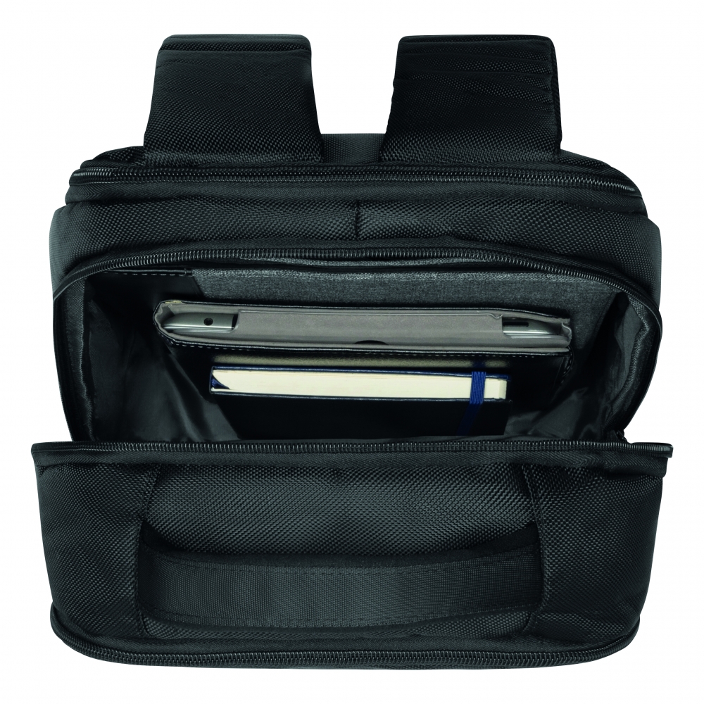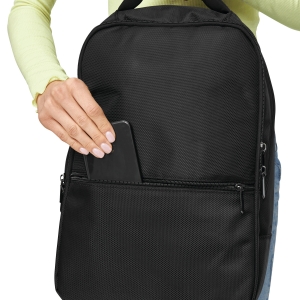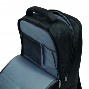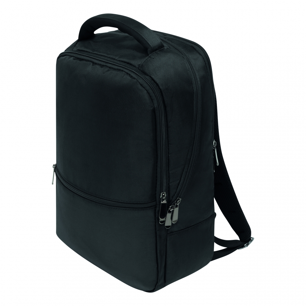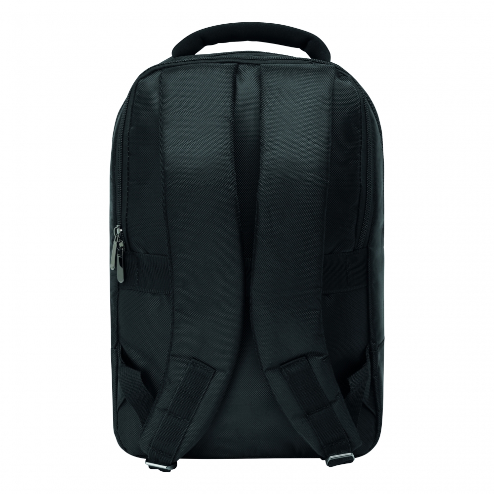 Artikel-Nr: INP56-0819640Rucksack OXFORD: 1 kleine Reißverschluss-Vortasche, 1 Vorfach mit kleinem Organizer, 1 Reißverschluss-Hauptfach mit 2 gepolsterten Einsteckfächern für Mediageräte und 1 Reißverschluss-Netzfach, 1 gepolstertes Reißverschluss-Laptopfach, gepolsterte und ergonomisch geformte Schultergurte, gepolsterte Rückseite mit Reporterfunktion