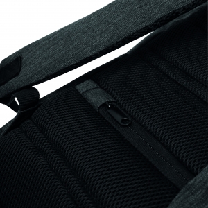 Rucksack PROTECT: vertikales Reißverschluss-Vorfach, 1 geräumiges Reißverschluss-Hauptfach mit Laptopfach und 3 Steckfächern, außen mit versenkbarem Karabinerhaken um die Hauptfach-Reißverschlussgriffe zum Schutz vor Diebstahl zu sichern, Tragegriff, gepolsterte und ergonomisch geformte Schultergurte, gepolsterter Rückenbereich mit Sicherheitsfach