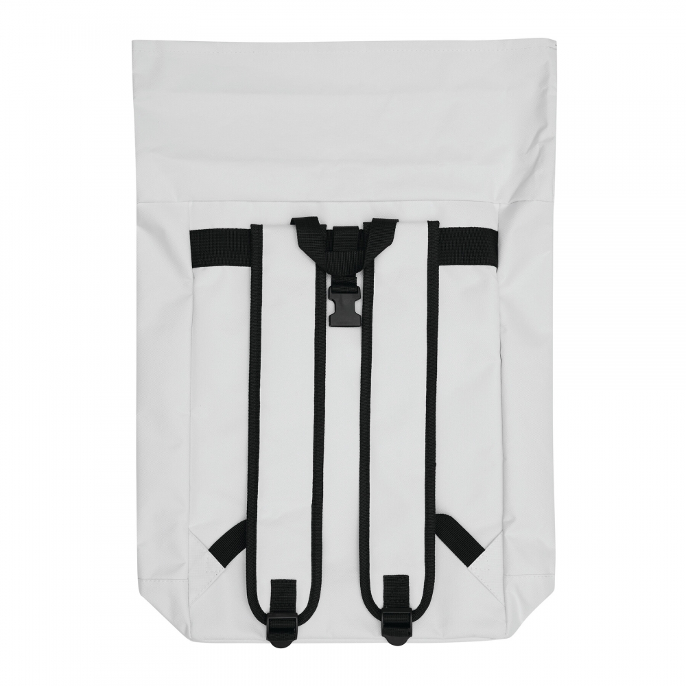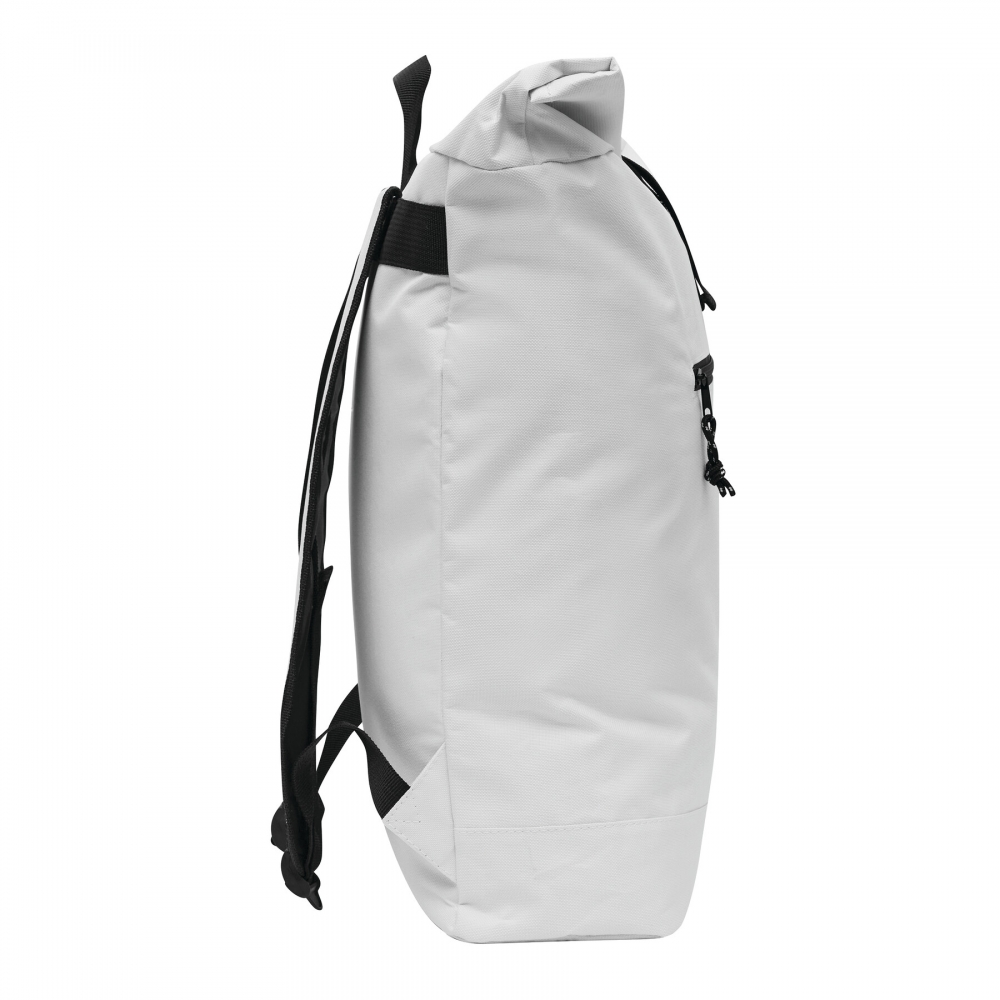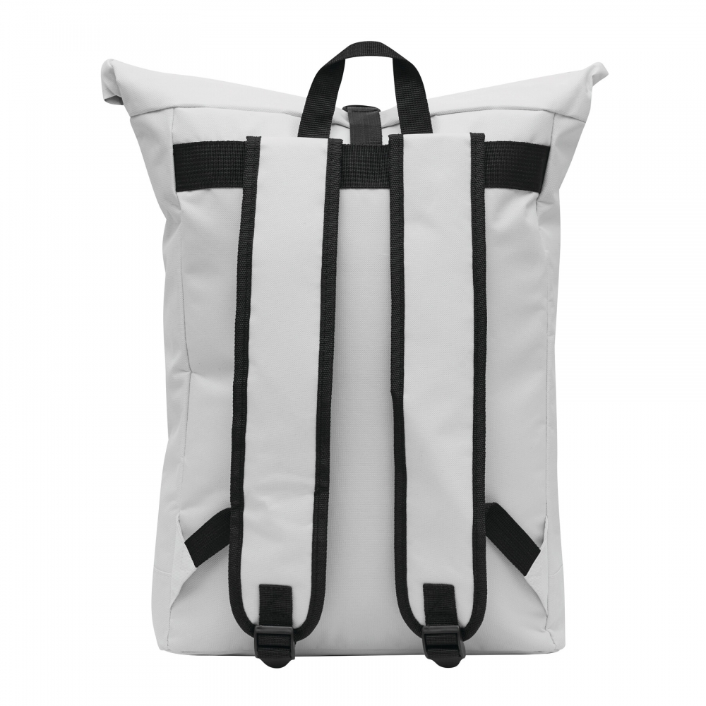 Artikel-Nr: INP56-0819704Rucksack ROLL-TOP: aus recyceltem Kunststoff (RPET), horizontales Reißverschluss-Vorfach, großes Hauptfach mit gepolstertem Innenfach für Laptop oder Tablet, aufrollbar und mit Schnappverschluss verschließbar, Trageschlaufe, gepolsterter Boden, Schultergurte und Rückenbereich
