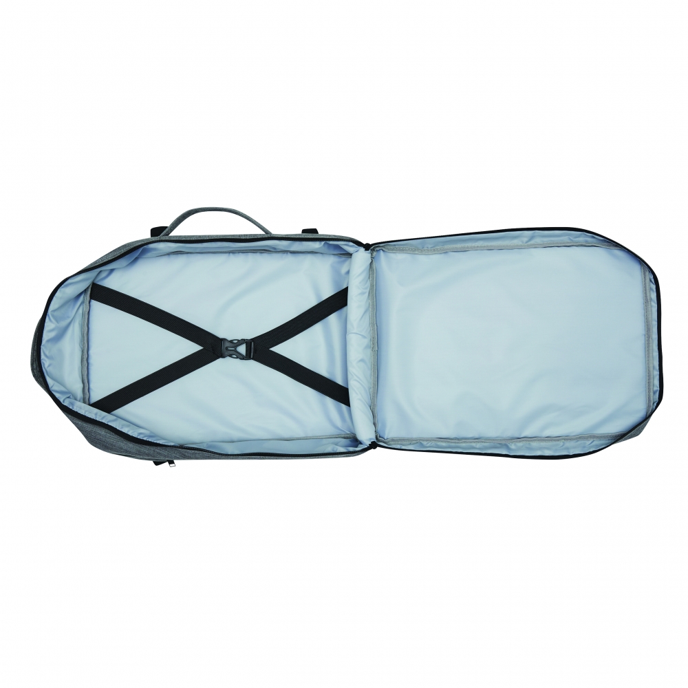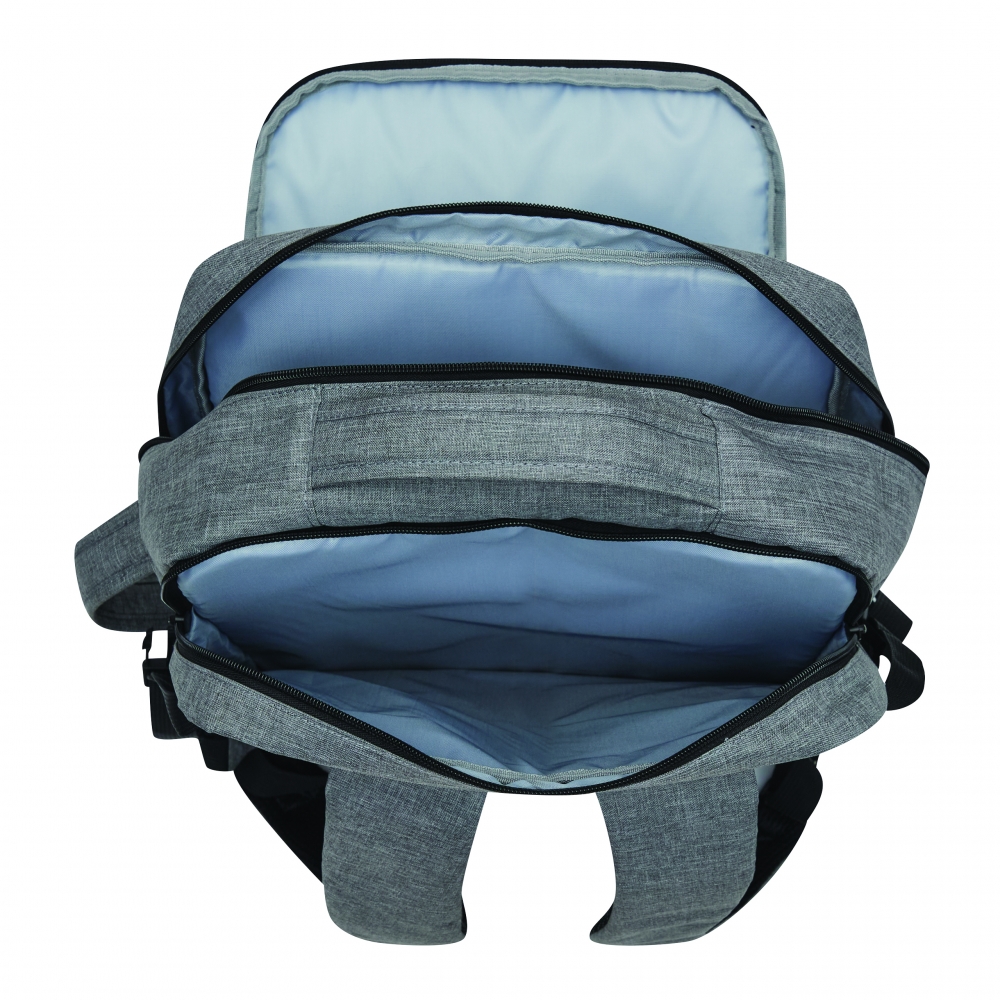 Artikel-Nr: INP56-0819690Rucksack STEWARD: 2 Reißverschluss-Vorfächer, eins davon mit Organizer (3 Steckfächer, 2 Stifteschlaufen), 1 großes gepolstertes Reißverschluss-Hauptfach mit Packgurt, 1 gepolstertes Reißverschluss-Laptopfach, jeweils 1 verstärkter Top- und Seitengriff, gepolsterte Schultergurte in ergonomischer Form und gepolsterter Rückenbereich, Gurt als Reporterfunktion auf der Rückseite, seitlich je 2 Kompressionsgurte mit Schnappverschluss