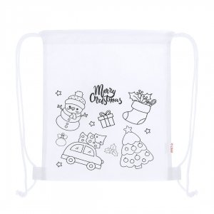 Artikel-Nr: KTO21260001000Weihnachtsrucksack für Kinder aus Vliesstoff RPET, speziell zum Ausmalen mit Buntstiften entworfen. Mit lustigen Weihnachtszeichnungen, einschließlich 4 Buntstiften in verschiedenen Farben. Er hat selbstschließende Kordeln und Stoffbefestigungen sowie ein RPET-Etikett außen. RPET-Material besteht aus recyceltem Kunststoff, fördert somit die Wiederverwendung von Plastikabfällen und trägt zur Nachhaltigkeit des Planeten bei.
