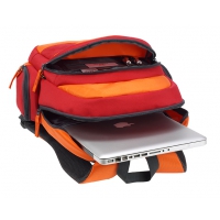 großes Hauptfach mit gepolstertem Einsteckfach, Reißverschluss-Vortasche mit Organizer-Elementen, seitliche Reißverschluss-Taschen, Handgriff, Rücken und Schultergurte gepolstert