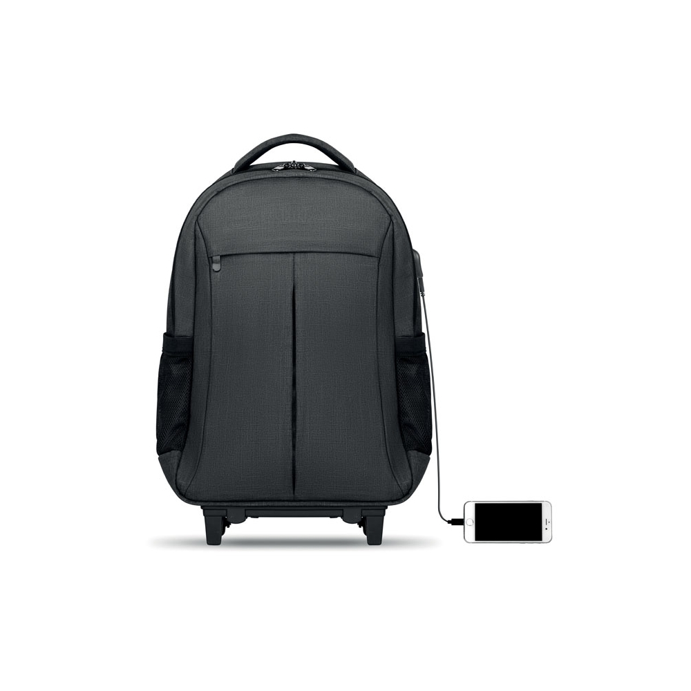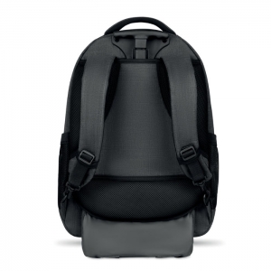 Artikel-Nr: OCBMO9179-07Rucksack-Trolley aus 2farbigem Polyester 360D. 2 Räder. Inkl. 15'' Laptop-Fach und Frontfach mit Reißverschluss, sowie Tablet-Fach. Gepolsterte Rückseite und Schultergurte. Schutzhülle für Räder.