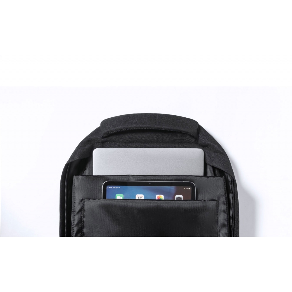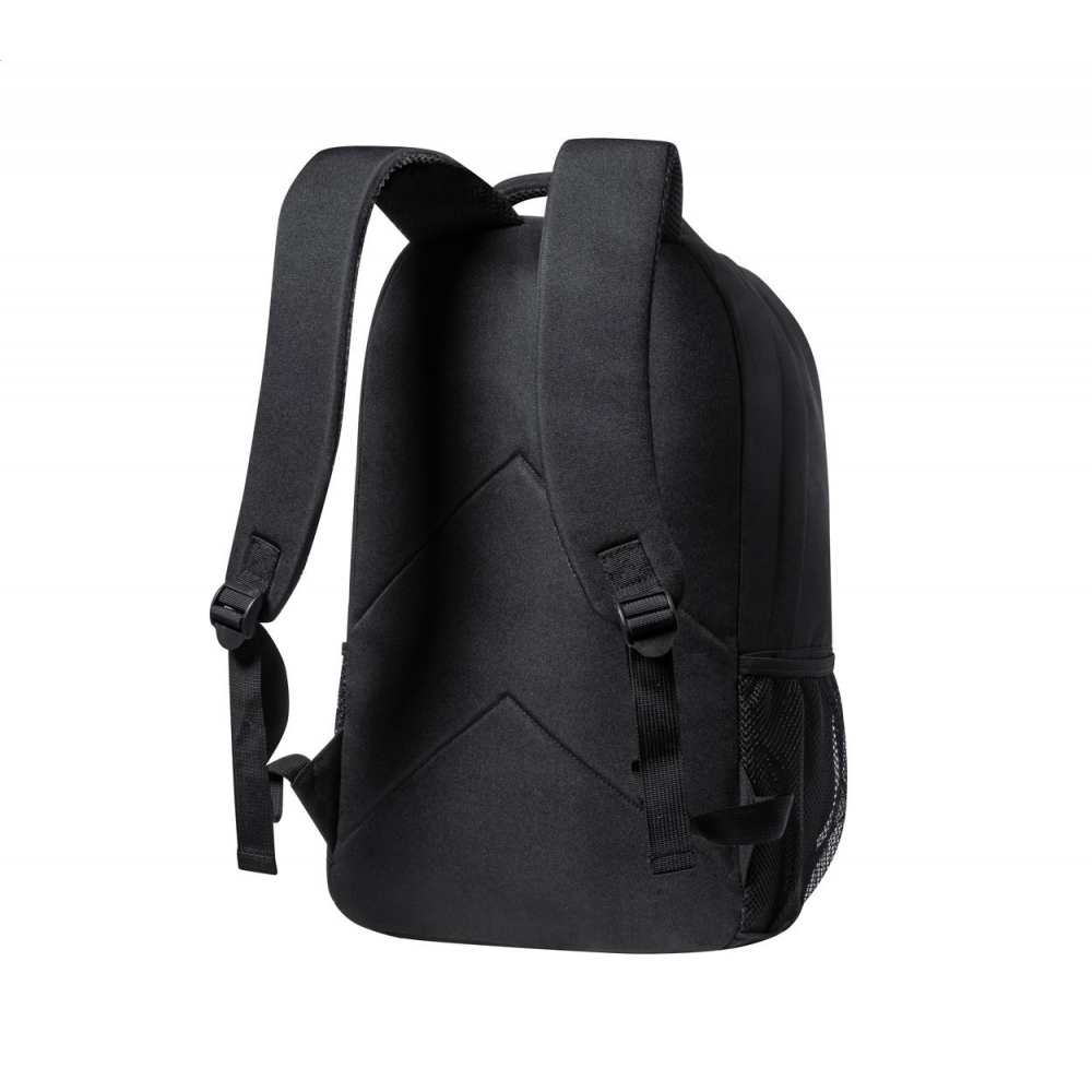 Artikel-Nr: AND722208-10RPET-Rucksack mit Reißverschlussfächern, Netzseitentaschen, elastischen Kordeln an der Vorderseite, gepolstertem Laptop- (15")- und Tablet-Fach (12"), gepolstertem Rücken und Schultergurten. Mit RPET-Label. Material: 600D RPET-Polyester.