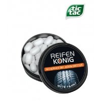 Artikel-Nr: 4287552-2-mwkleine runde Dose in matt weiß gefüllt mit ca. 20 g Tic-Tac Dragees mit Pfefferminz oder Orangengeschmack. inkl. Zutatenaufkleber und einzeln eingesleevt.