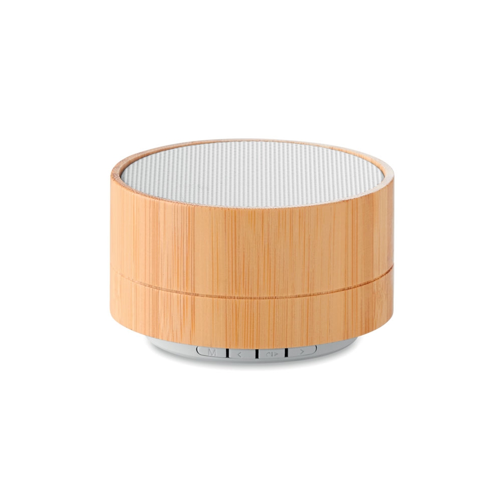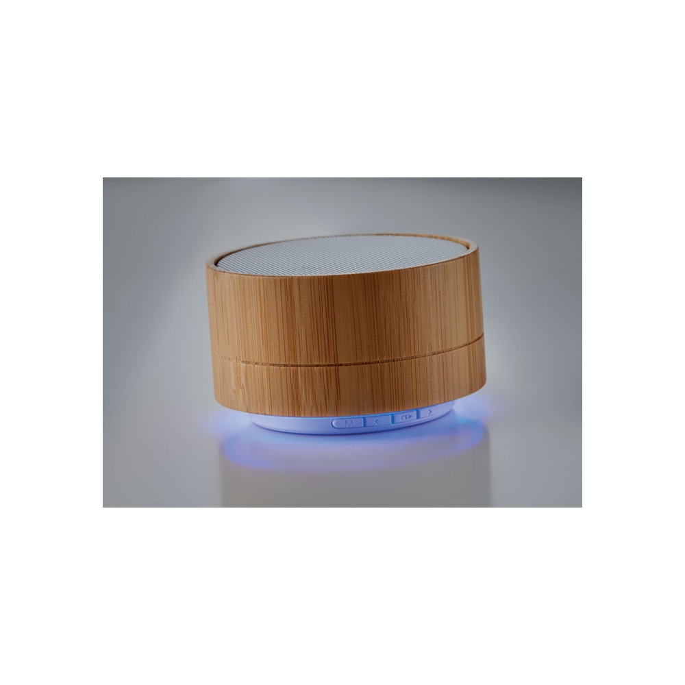 Artikel-Nr: OCBMO9609-064.2 wireless Lautsprecher aus ABS mit Bambus-Dekor. Beleuchtete Unterseite. Inkl. wieder aufladbare Li-on 450 mAh Batterie und Mikro-USB-Kabel. Spielzeit ca. 3h. Ausgangsleistung: 3W, 4 Ohm und 5V. Bambus ist ein natürliches Produkt, es kann daher zu leichten Abweichungen in Farbe, Dekor und Maßen kommen.