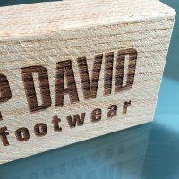 Zwei holzfarbene Blöcke (Natur) mit Gravur