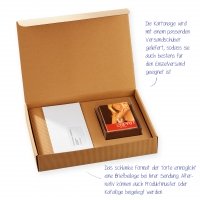 Artikel-Nr: 4943054Kleiner Kreativ-Genuss für postkartengroße Motive: leckere Torte, mit Lebensmittelfarben nach Ihren Wünschen bedruckt, verpackt im Klarsicht-Umkarton und einer Schmuckwellen-Versandkartonage. Mit der Präsentkartonage ist sie bestens für Mailings mit Brief- oder Flyerbeilage geeignet. Verfügbare Geschmacksrichtungen: Amaretto, Eierlikör, Schoko, Orange.