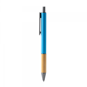Artikel-Nr: PRM124122_02Metallkugelschreiber in mattem Finish mit Bambusgriff und dunklen Farbdetails. Blaue Tinte.