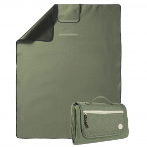 Artikel-Nr: ART52041N0031Luxuriöse und sportliche Picknickdecke mit einer wasserabweisenden Unterseite und einer Reißverschlusstasche zum Verstauen von Gegenständen. Erhältlich in grünem rPET-Material. Die Decke ist leicht aufzurollen und kann mit einem Griff getragen werden. Größe aufgeklappt: 165 x 128 cm.