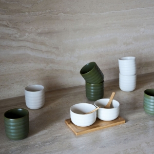 Artikel-Nr: ART52217N0001Die Schälchen Ellen werden paarweise mit zwei Löffeln auf einem hübschen kleinen Bambustablett geliefert. Sie sind aus Steingut in einem natürlichen Beigeton gefertigt. Sie sind die perfekten Schalen für Glühwein, aber auch für andere Dinge im Rest des Jahres.