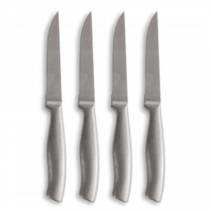 Artikel-Nr: ART52221N0005Jede Küche braucht Grillmesser der Meisterklasse, denn Essen schmeckt einfach besser, wenn es sich leicht in mittelgroße Stücke schneiden lässt. Anton Grillmesser sind stilvoll, griffig und haben eine scharfe Klinge. Hergestellt aus rostfreiem Stahl mit feinem Stonewashed-Finish. Kommt in einem attraktiven 4er-Pack.