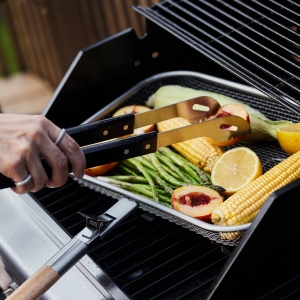 Artikel-Nr: ART52225N0205Fredde BBQ Grillutensilien von Sagaform mit einem praktischen Design aus Edelstahl mit schwarz gebeizten Griffen aus Holz und einem guten Griff für eine einfache Verwendung perfekt für ein Barbecue.