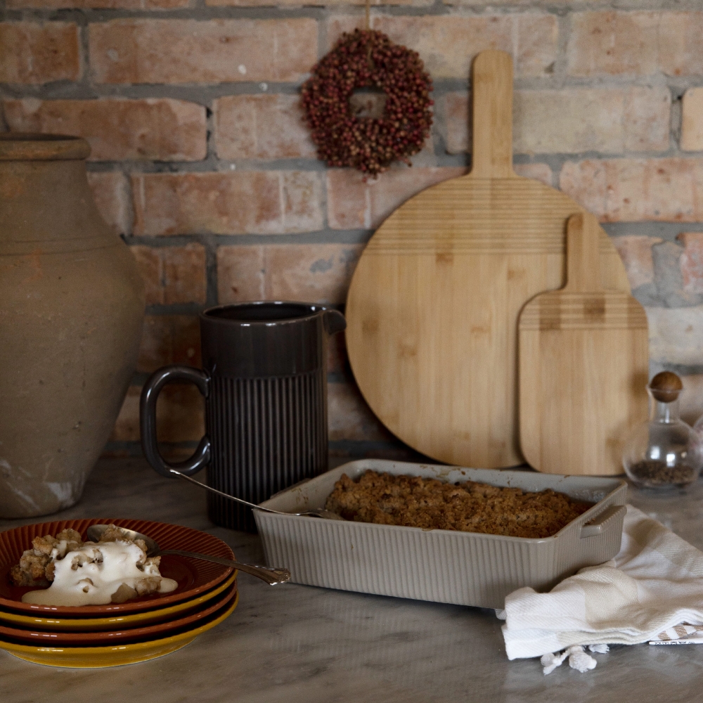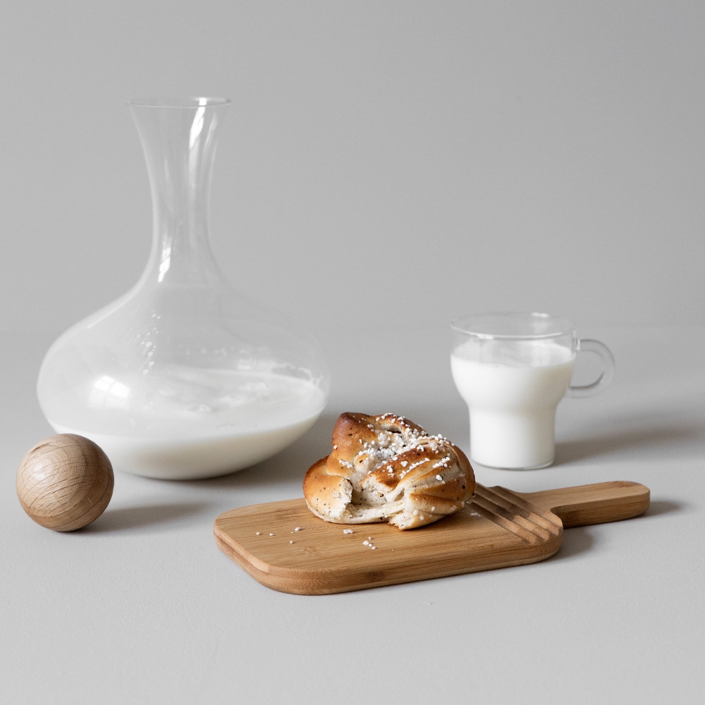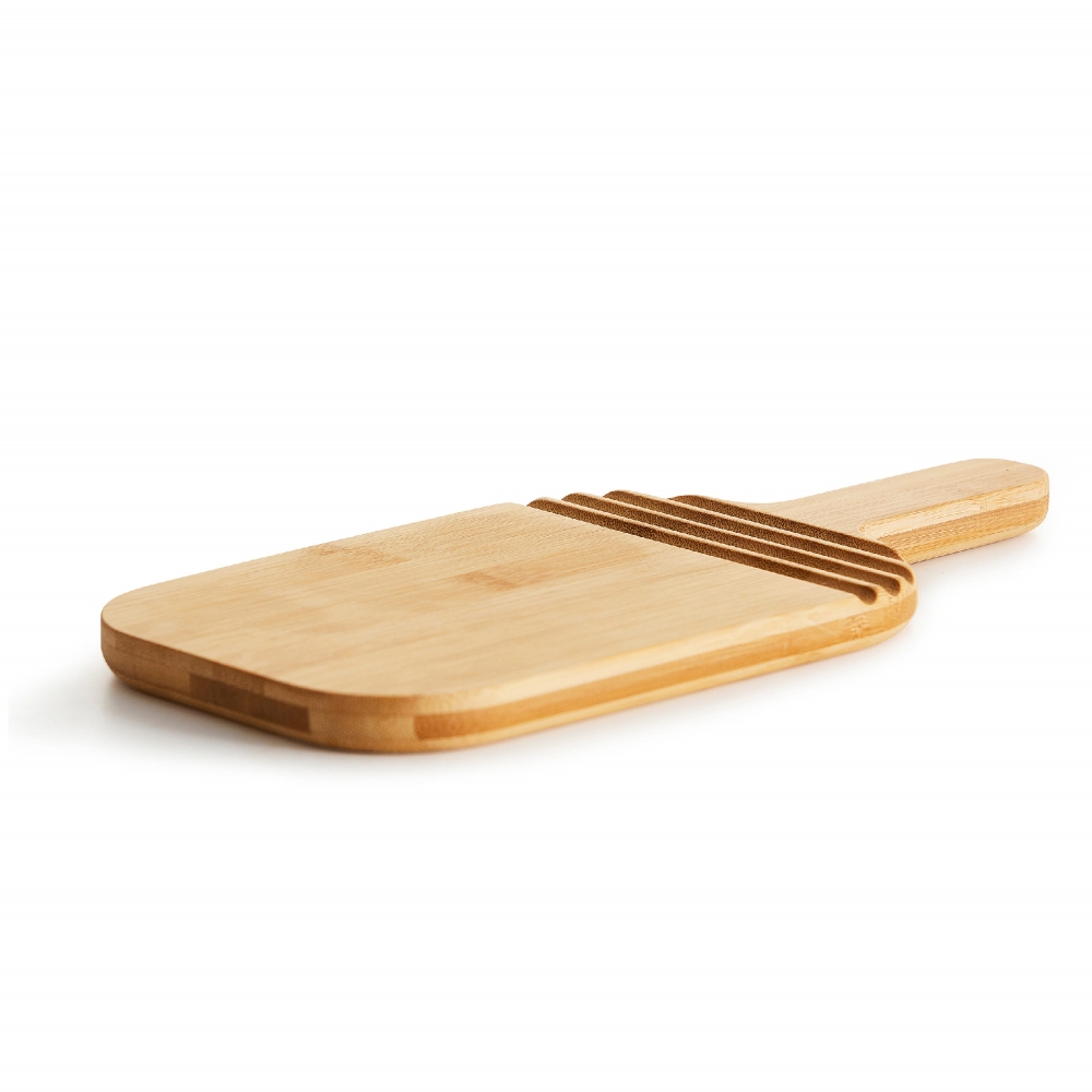 Artikel-Nr: ART52015N0052Zwei-in-einem Servier- und Schneidebrett aus Bambus in kleinem Format. Das Brett wurde von Anton Björsing entworfen. Zu den Designmerkmalen gehören ein stabiler Griff und Rillen, die optischen Stil und Funktion miteinander verbinden. Die Rillen bieten Platz für Utensilien, damit sie nicht abrutschen.