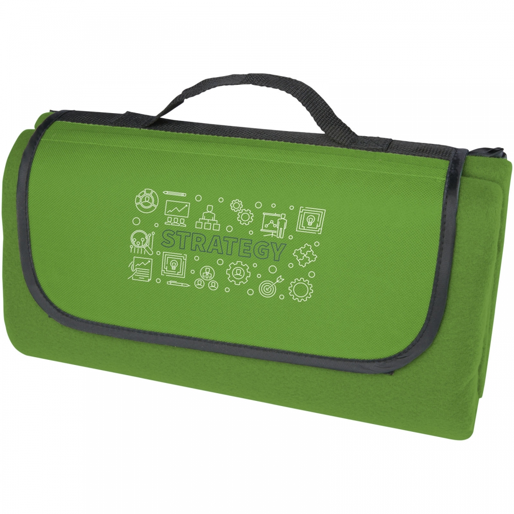 Artikel-Nr: CPO11329491Wasserabweisende Picknickdecke aus recyceltem PET Kunststoff (140 g / m2). Einmal gefaltet und gesichert, lässt sich die Decke mit dem mitgelieferten Tragegriff leicht verstauen und transportieren.