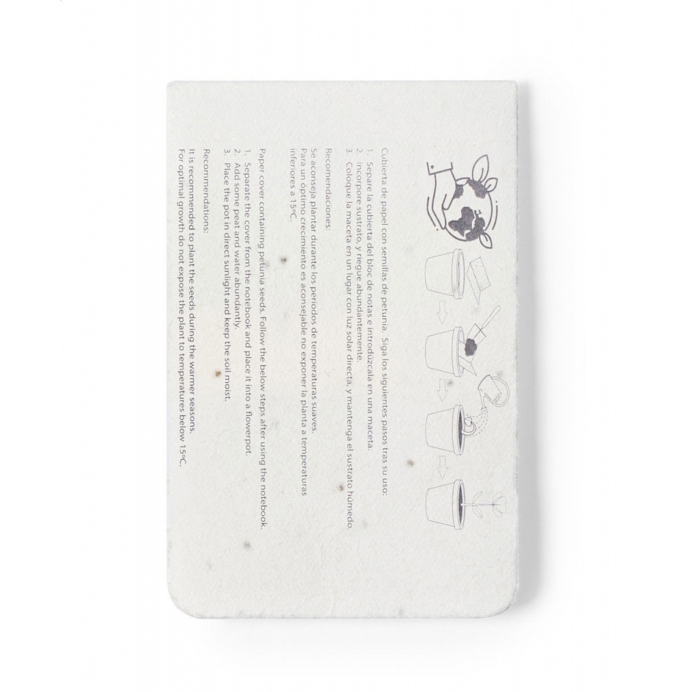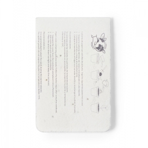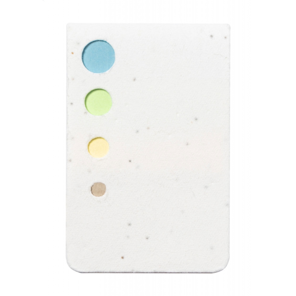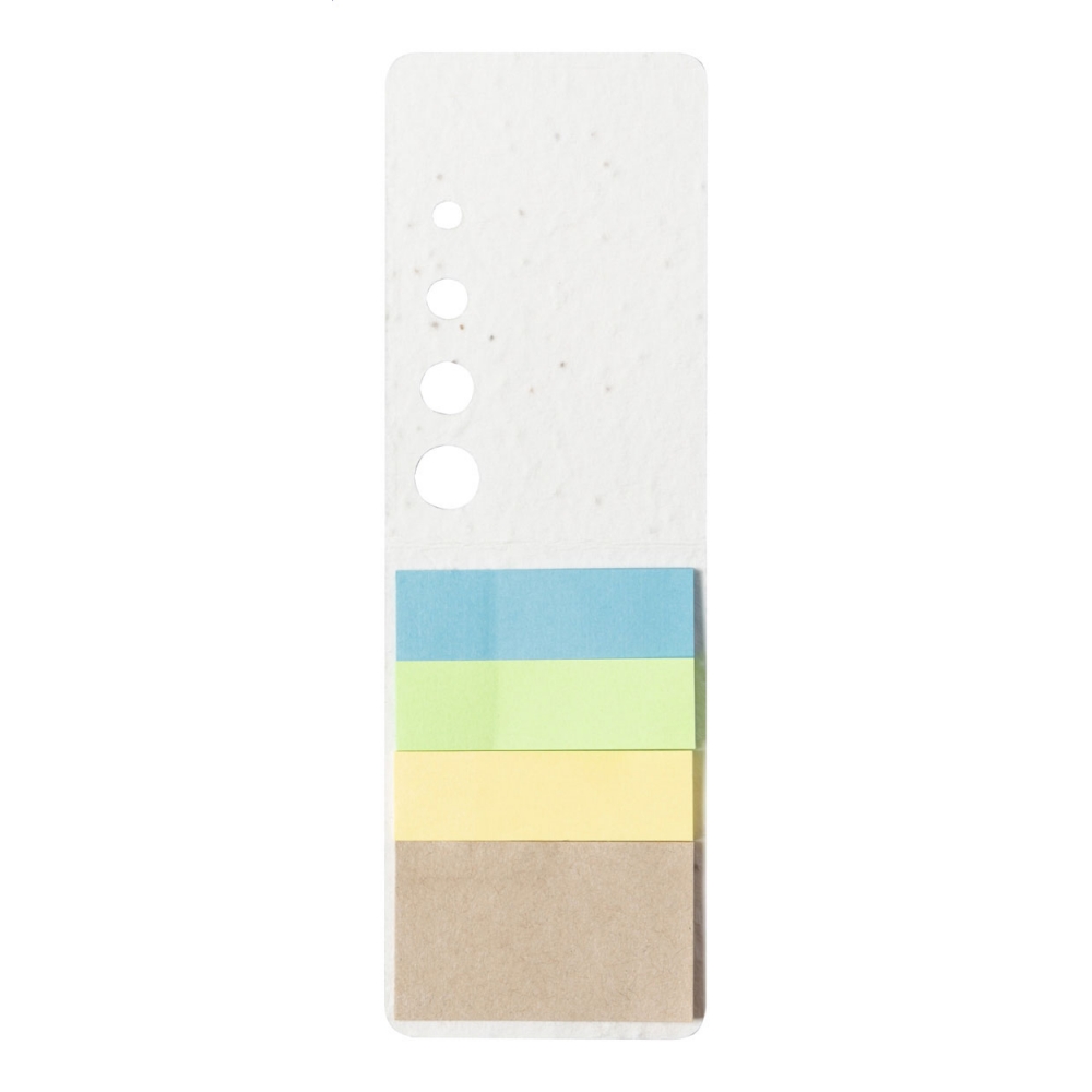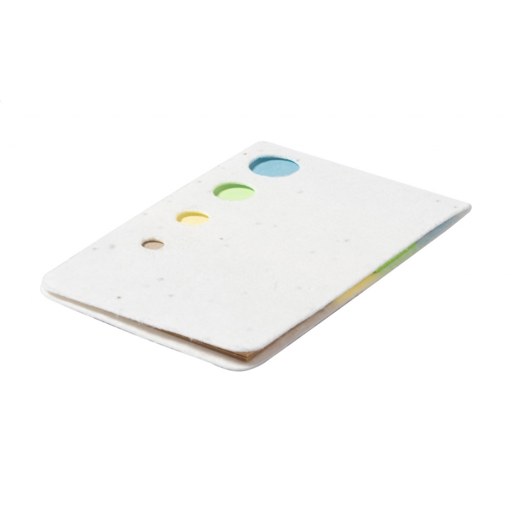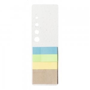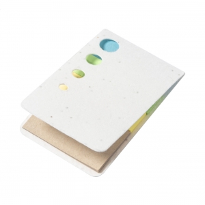 Artikel-Nr: AND722722-00Notizblock aus Recyclingpapier (10 Haftnotizen und 30 Seitenmarker in 3 Farben) mit Hülle aus Samenpapier. Das Samenpapier besteht aus Petuniensamen in gemischten Farben, die gepflanzt werden können nachdem die Haftnotizen vom Samenpapier entfert worden sind.