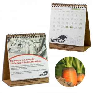 Artikel-Nr: HOP11.41632.00-karIn einer hektischen Welt, in der wir uns oft von der Natur entfremden, ist es wichtiger denn je, sie in unseren Alltag zu integrieren. Unser Samenpapier Tischkalender bietet eine einzigartige Verbindung zwischen Funktionalität und Naturverbundenheit. Der Fuß besteht aus Kraftpapier, die Vorder- und Rückseite werden individuell bedruckt. Die erste Seite der 7 Samenpapier-Blätter wird vollflächig individuell bedruckt. Auf den Monatsseiten ist jeweils ein Druckfeld in der Größe von 92 x 37 mm individuell bedruckbar (ein Motiv für alle Seiten).Alle 7 Samenpapierseiten enthalten denselben Samen. Zur Auswahl stehen die Samen von Minze, Lavendel, Kamille, Rudbeckia, Mohn, Gänseblümchen, Wildblumenmischung, Karotte oder Tomate. Wenn das Kalenderblatt nicht mehr benötigt wird, kann es eingepflanzt werden und man schenkt seiner Umgebung eine kleine, grüne Oase des Glücks und der Achtsamkeit.