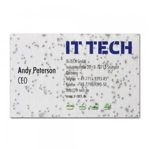 Artikel-Nr: HOP11.41599.00-thMöchten Sie einen bleibenden Eindruck bei Ihren Geschäftspartnern hinterlassen? Visitenkarten aus Samenpapier sind eine kreative und individuelle Lösung. Diese Karten werden nach Ihren Wünschen gestaltet und enthalten Samen, die im Papier integriert sind. Mögliche Samensorten: Blumenmischung, Kräutermischung, Mohnblume, Thymian.