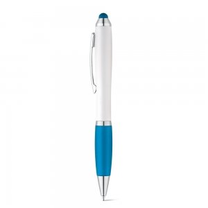 Artikel-Nr: PST91634-124Kugelschreiber aus ABS mit Metallclip und Drehmechanismus, Gummigriff und Touchpen-Funktion. ø11 x 135 mm