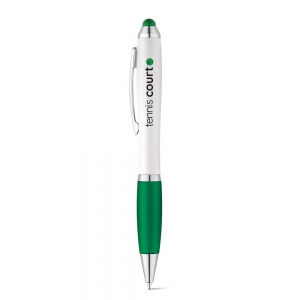 Artikel-Nr: PST91634-109Kugelschreiber aus ABS mit Metallclip und Drehmechanismus, Gummigriff und Touchpen-Funktion. ø11 x 135 mm