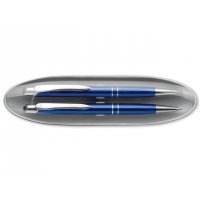 Schreibset mit Metallkugelschreiberund Druckbleistift im Kunststoffetui, blauschreibende Mine.