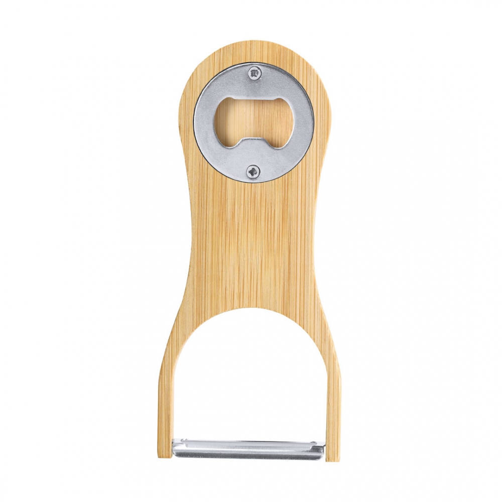 Artikel-Nr: KTO22138013000Peeler-Eröffnung aus Bambus. Unten befindet sich ein praktischer und funktionaler Schäler aus 420 Edelstahl. Oben befindet sich ein Öffner mit metallischem Finish.