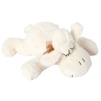 Das süße, schlafende Schäfchen ist aus kuschelweichem, hochwertigen Softplüsch. 100 % Polyester. Waschbar. Reine Handarbeit.