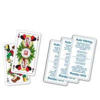 Artikel-Nr: W8295210-3Schafkopf mit Werberückseite. 36 Blatt, Kartenformat: 56 x 100 mm, extra große Eckzeichen, Werberückseite nach Ihren Vorlagen, in Cello mit goldenem Aufreißband, in Klarsichtetui oder Werbefaltschachtel. Optional: individuell gestaltetes Deckblatt, alternative Verpackungen.