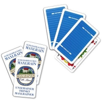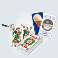 Artikel-Nr: W8295210-3Schafkopf mit Werberückseite. 36 Blatt, Kartenformat: 56 x 100 mm, extra große Eckzeichen, Werberückseite nach Ihren Vorlagen, in Cello mit goldenem Aufreißband, in Klarsichtetui oder Werbefaltschachtel. Optional: individuell gestaltetes Deckblatt, alternative Verpackungen.