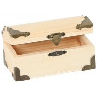 12 x 6,5 x 5 cm. Dekoratives Holzkistchen mit gewölbtem Deckel, Metall-Zierverschluss und -Beschlägen.