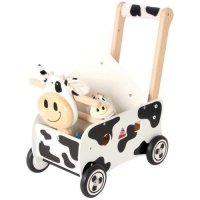 Artikel-Nr: 375110645Stabiler Spielwagen aus Holz im Tier-Design. Das multifunktionelle Gefährt hat einen Griffbügel, eine abnehmbare Ablage- und Sitzfläche sowie ein Formensortierspiel in den Seitenteilen. Inklusive sechs Bauklötzen für das Sortierspiel und einer kleinen Spiel-Kuh, die man am Schwänzchen des Schiebewagen-Tieres festmachen und hinter sich herziehen kann. Kleine Kinder können auf dem Wagen sitzen oder ihn als Rutscher verwenden. Ab 12 Monaten. Sitzhöhe: 20 cm. Griffhöhe: 44 cm.
