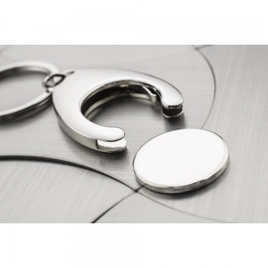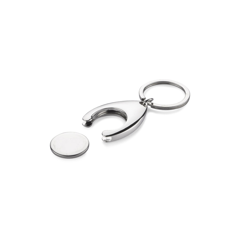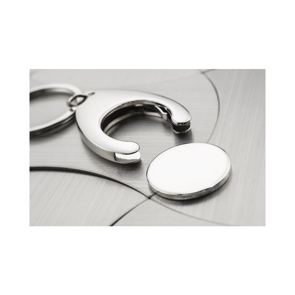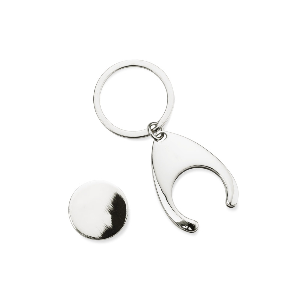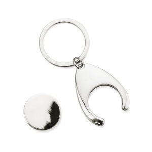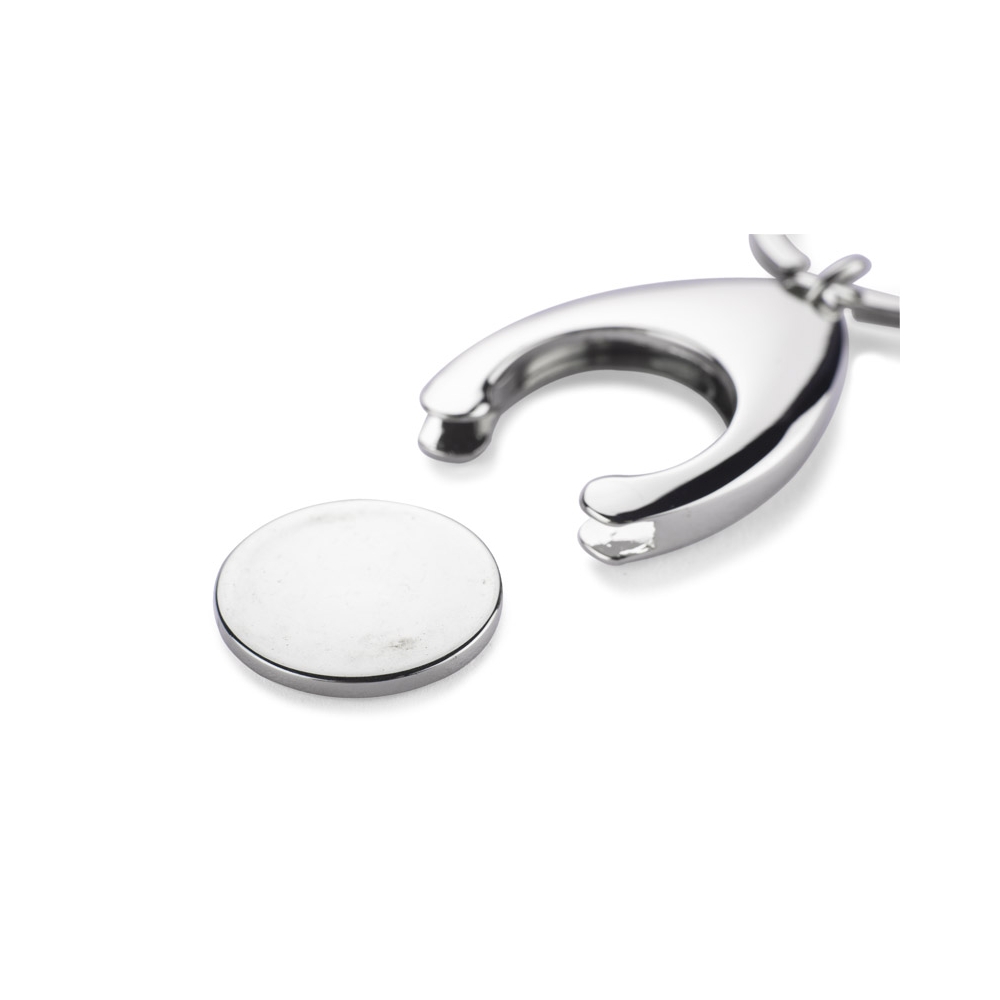 Artikel-Nr: ARD17883Trolley Münzhalter Schlüsselanhänger mit 1EUR großer Kunststoff Münze. Chrom-Metall. Sehr nützlich. Gepackt in eine schwarze Box.