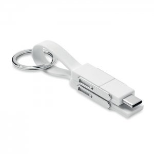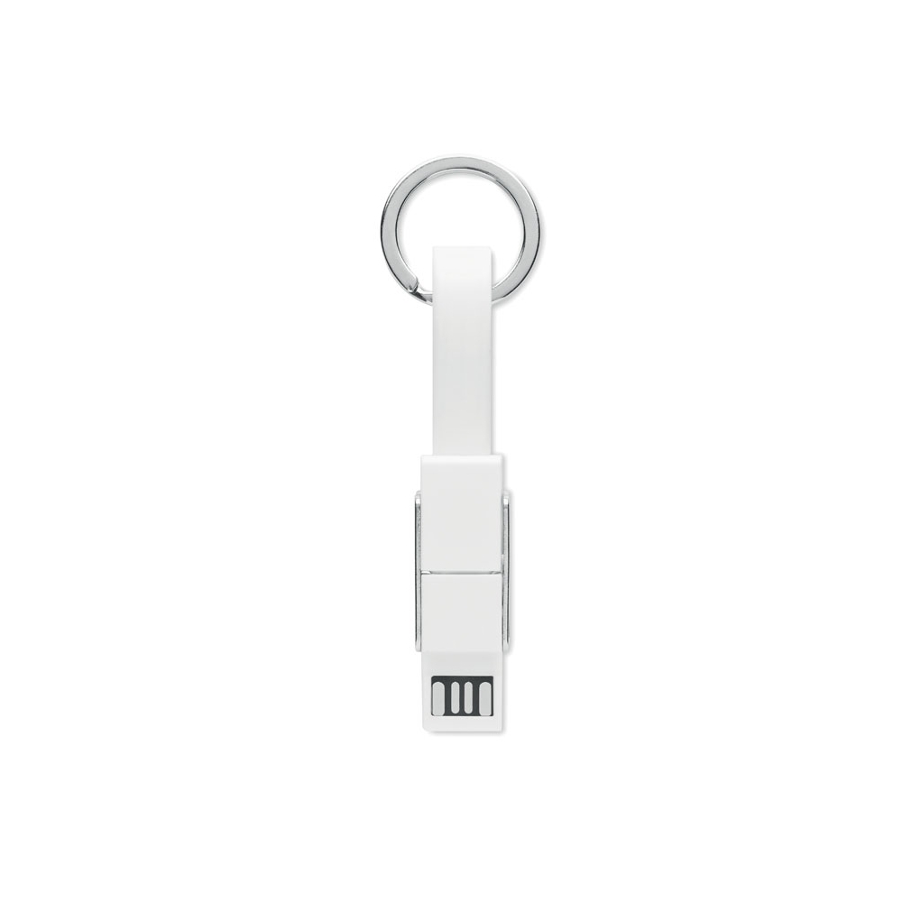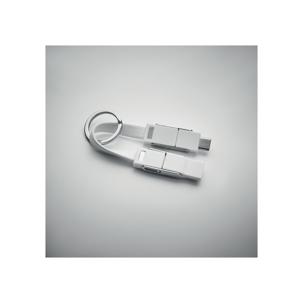 Artikel-Nr: OCBMO6820-06Schlüsselanhänger mit 4in1-Ladekabel. Eingang / Ausgang: 2x Typ-C, Typ-A, Mikro-USB.